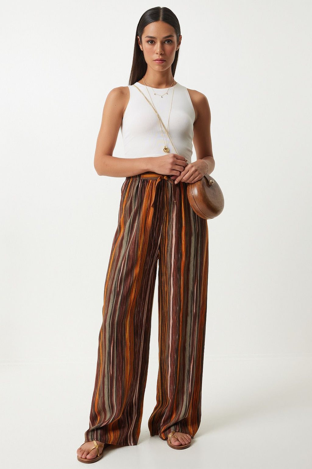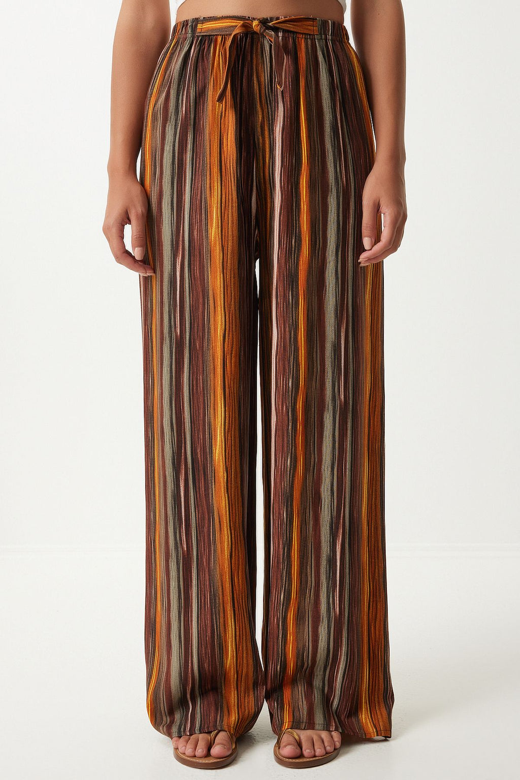 Female Brown Patterned Viscose Palazzo Pants EN00606