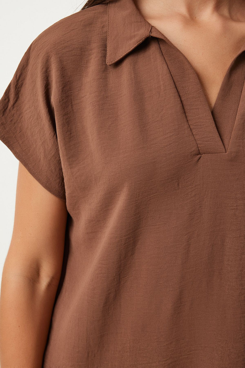 Female Brown Polo Yaka Summer Abundant Linen Ayrrin Dress to00138