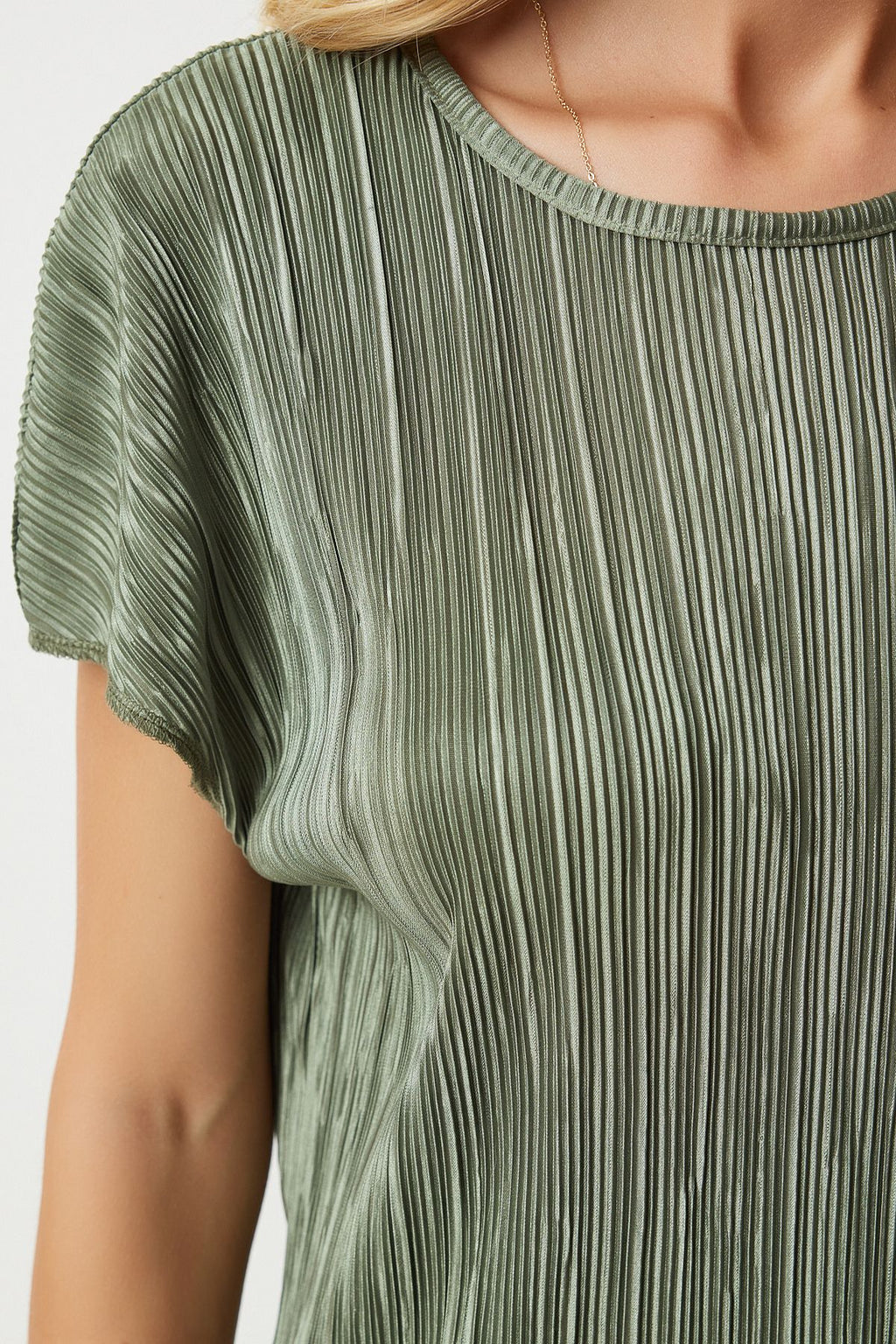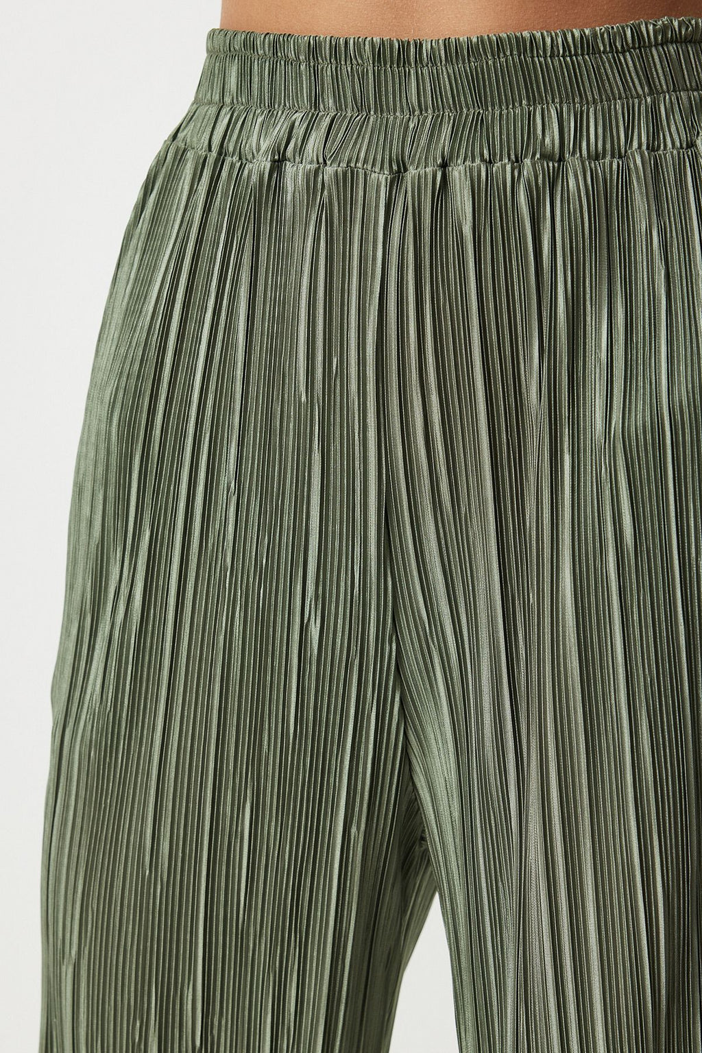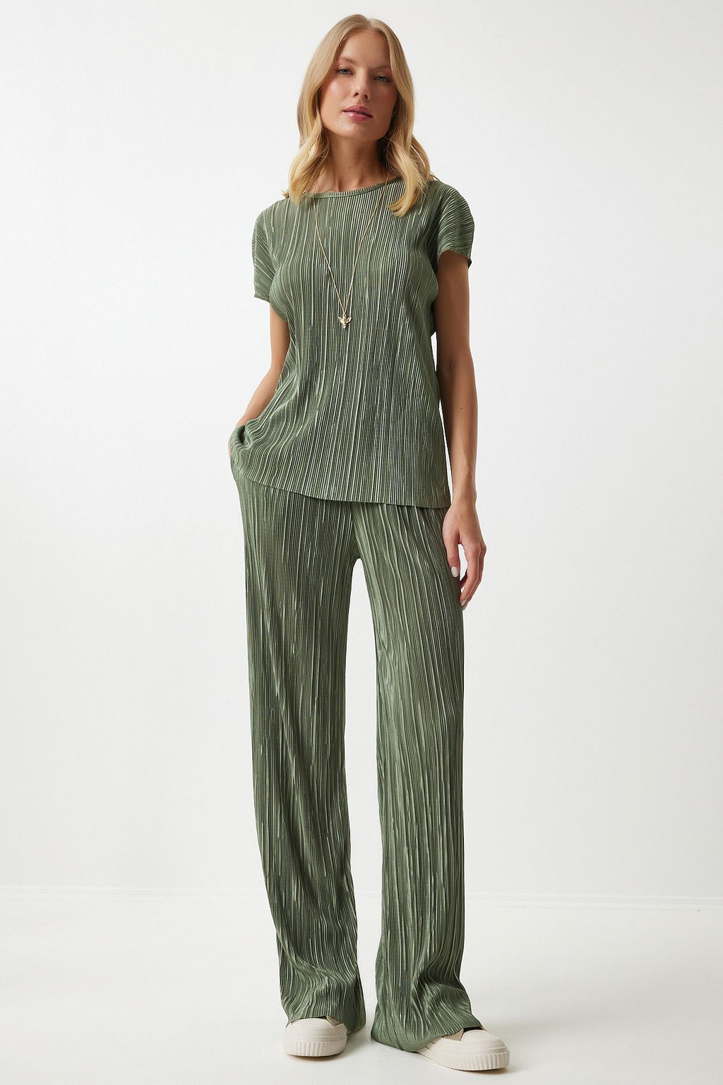 Female Cagla Green Pilisle Casual Blouse Pants Set Mc00283