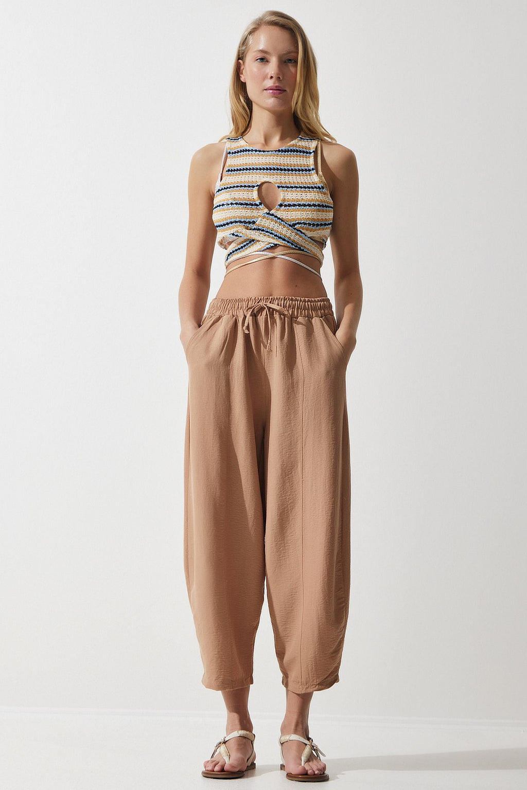 Female Dark Beige Pocket Linen Viscose Shalwar Pants CV00001