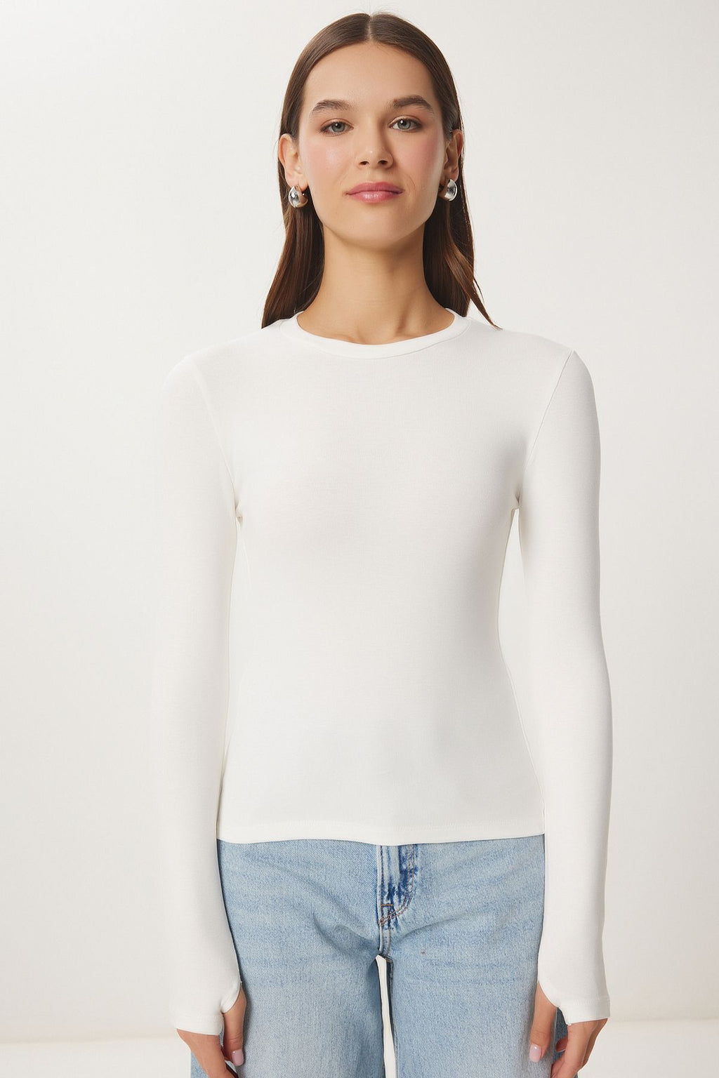 Female Ecru Bicycle Basic Knitting Blouse CR00439
