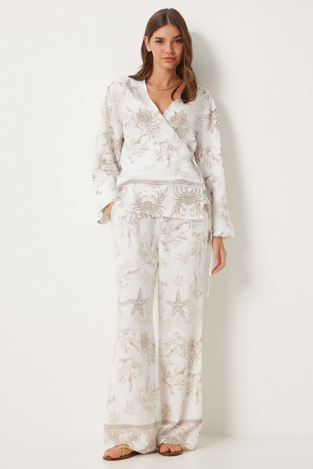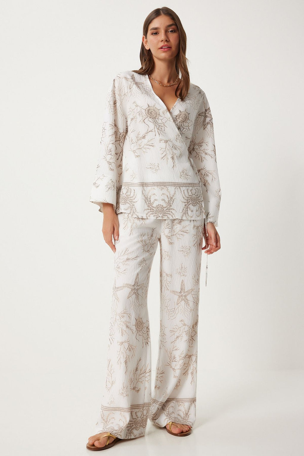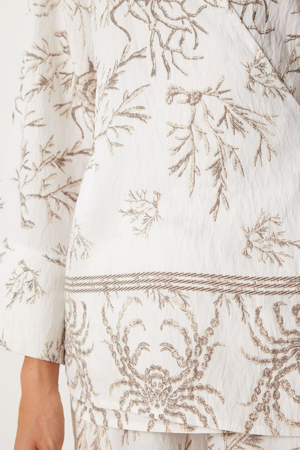 Female Ecru Gray patterned viscose Kimono Palazzo Set FN03279