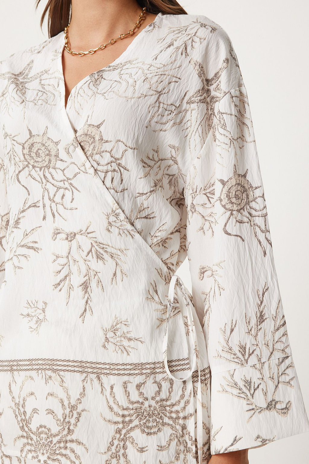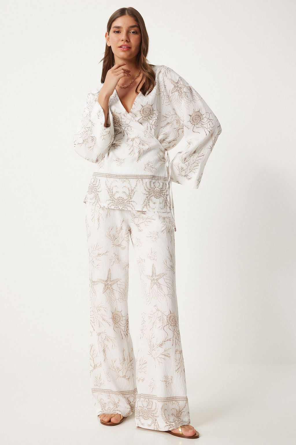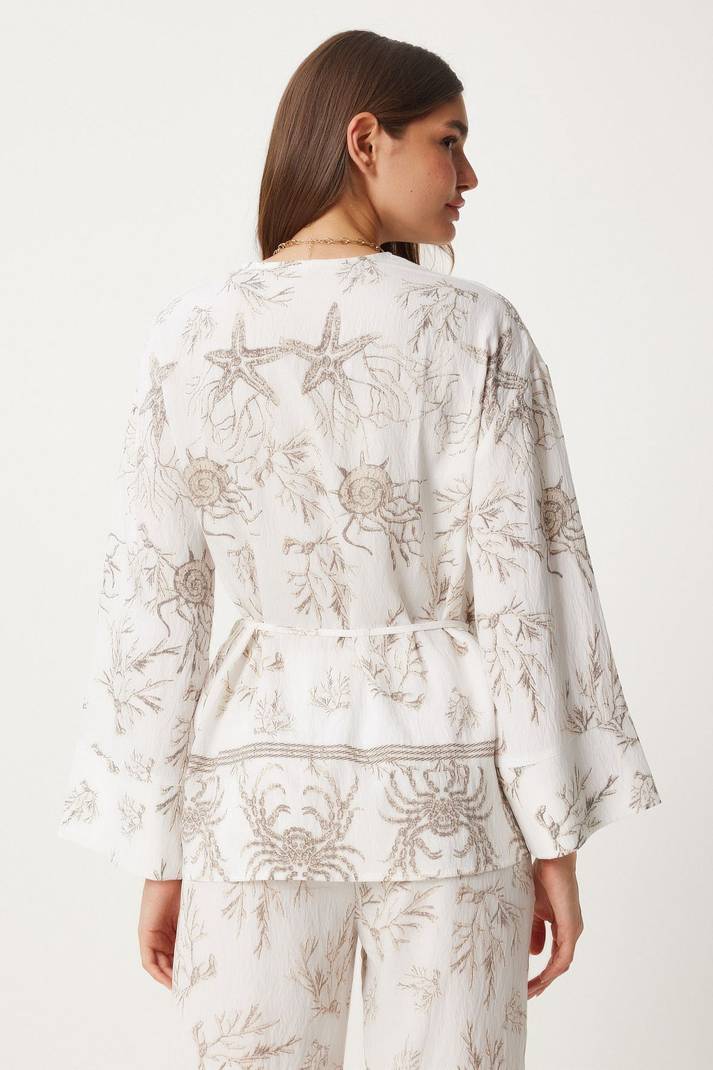 Female Ecru Gray patterned viscose Kimono Palazzo Set FN03279