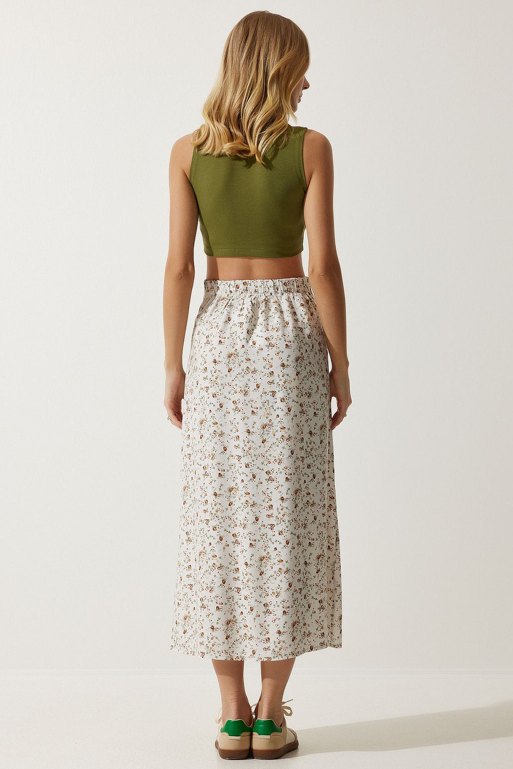 Female ecru patterned slit viscose skirt UB00246