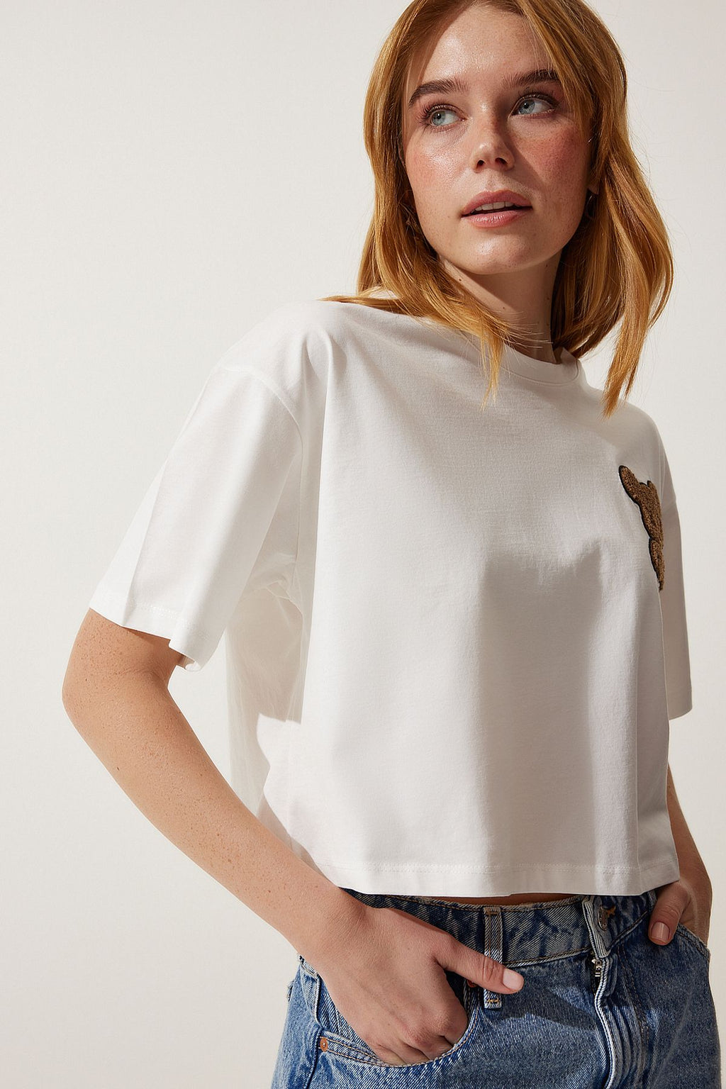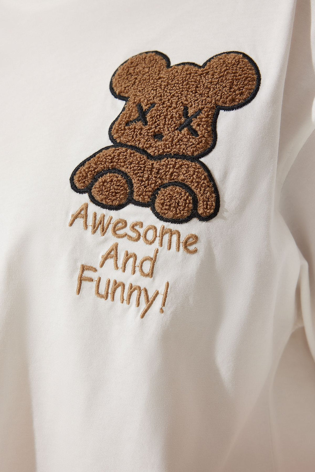Female ecru teddy bear arms Crop knitting T-shirt HF00455