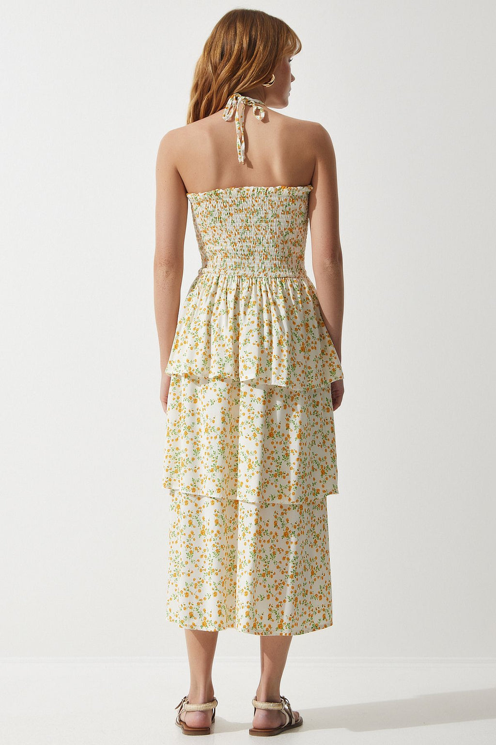 Female Ecru Yellow Flower Volan Summer Viscose Dress UB00226
