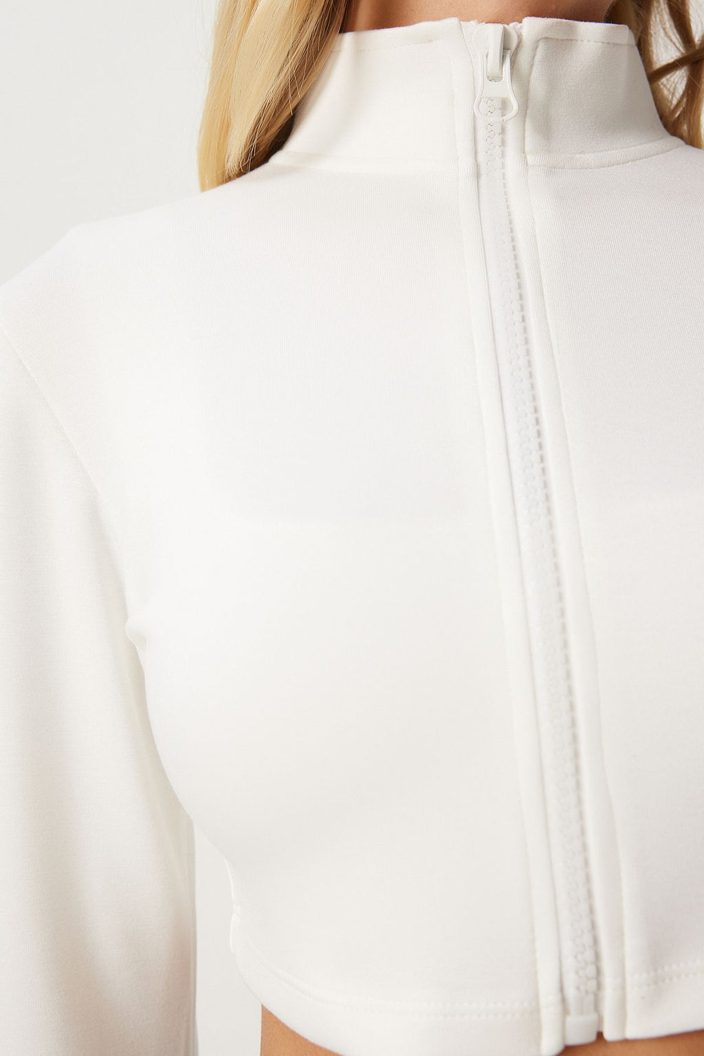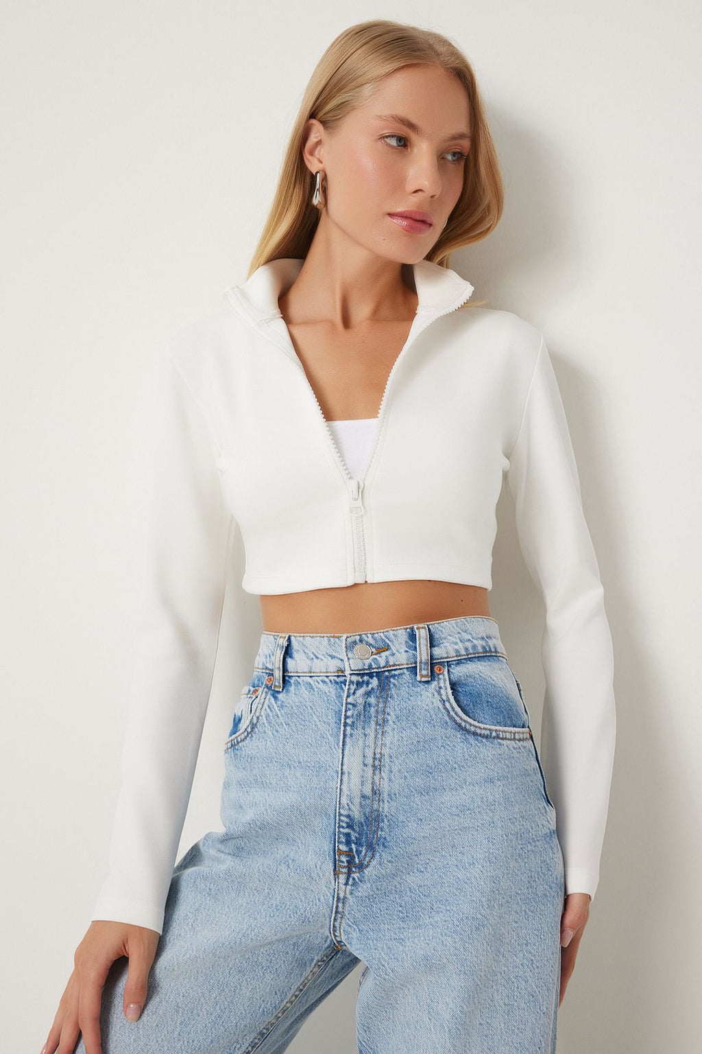 Female Ecru Zipper Crop Scuba Jacket NJ00161