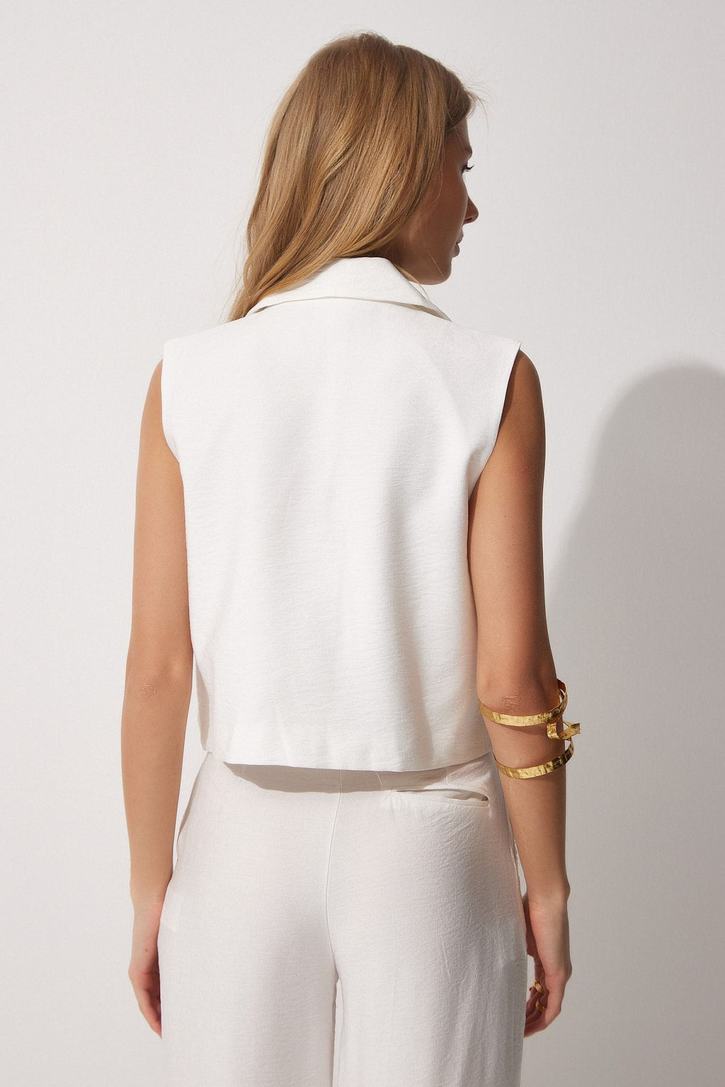 Female Ekru Shawl Yaka Linen Vest To00052