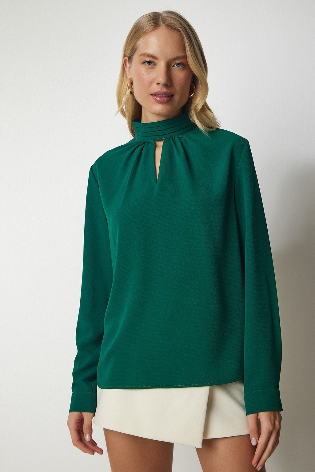 Female Emerald Green Window Detailed Crepe Blouse UB00154