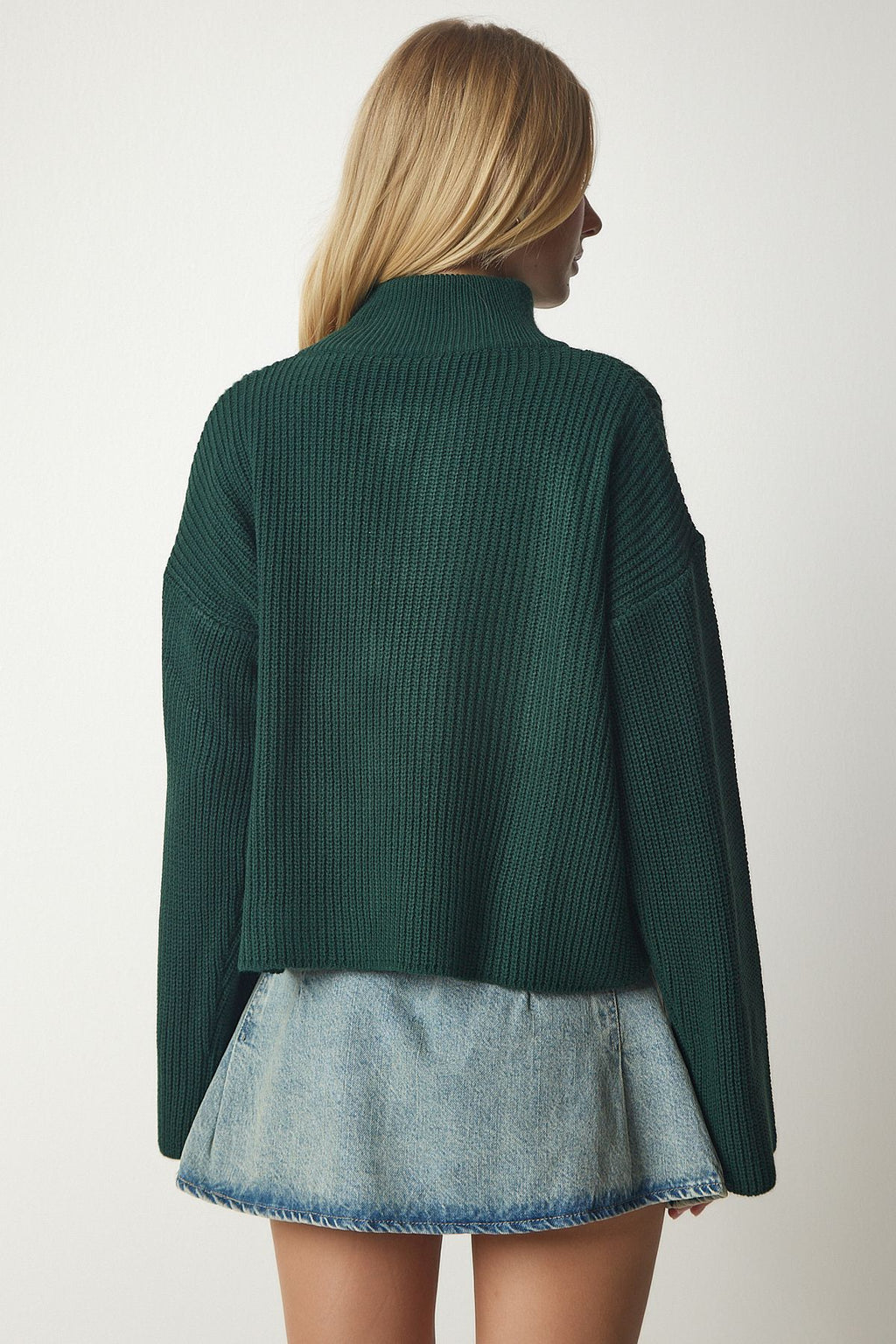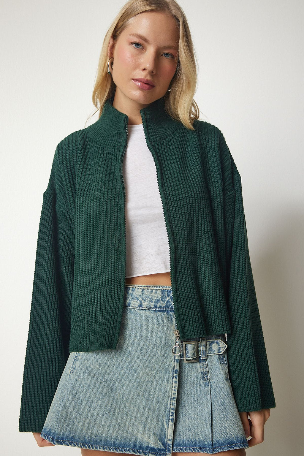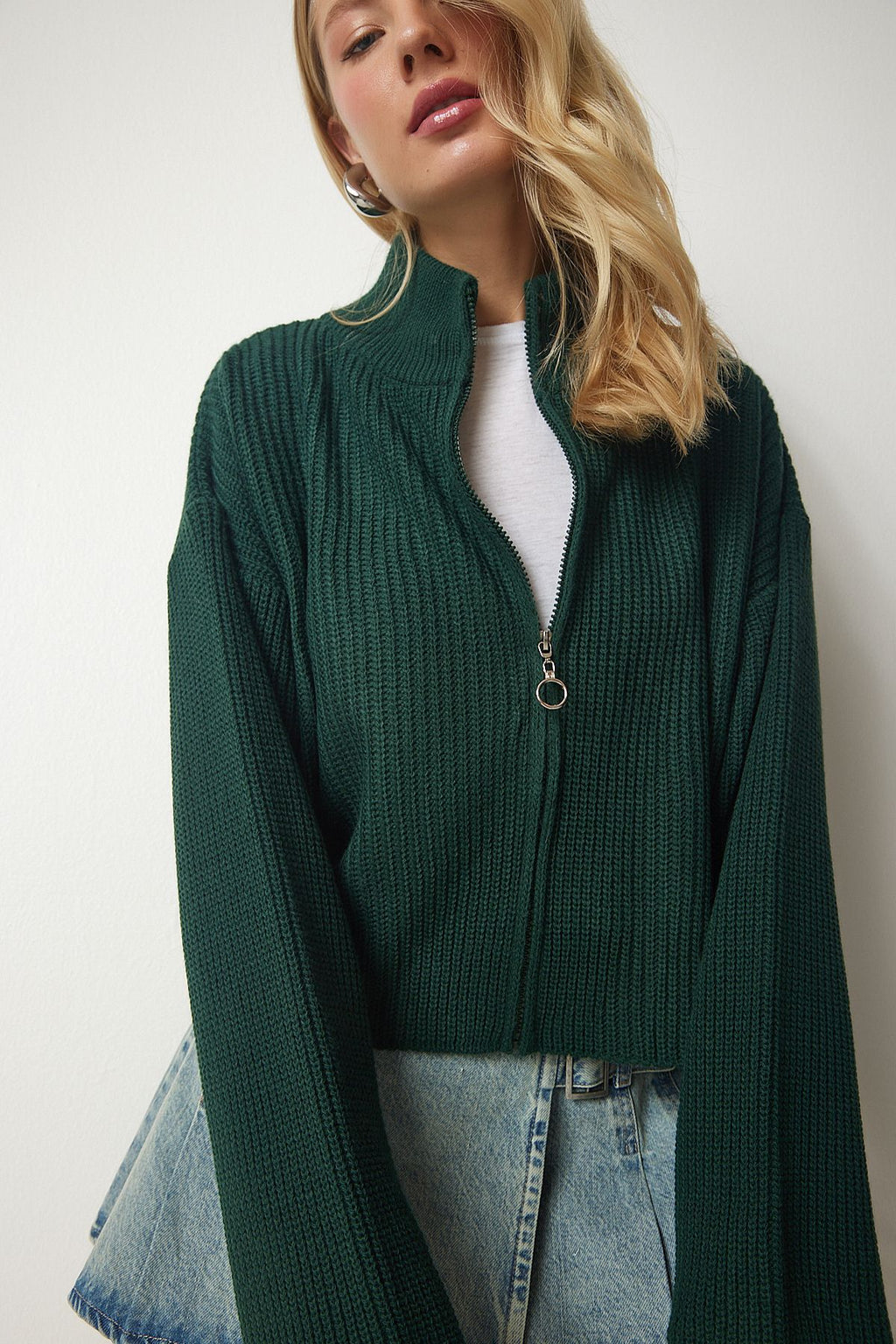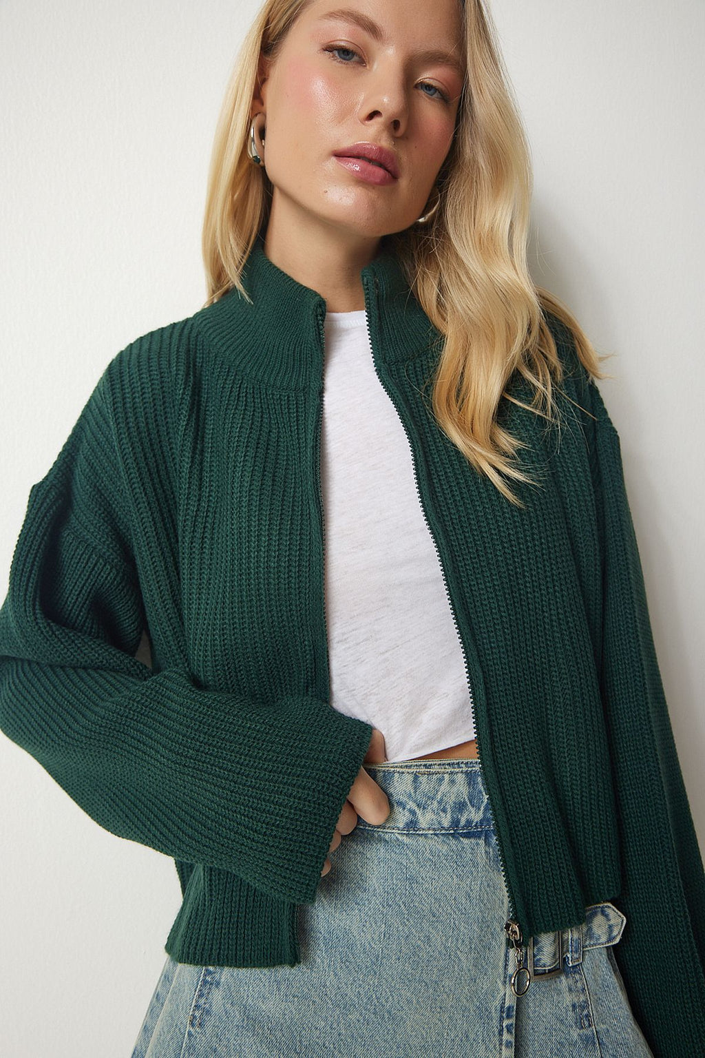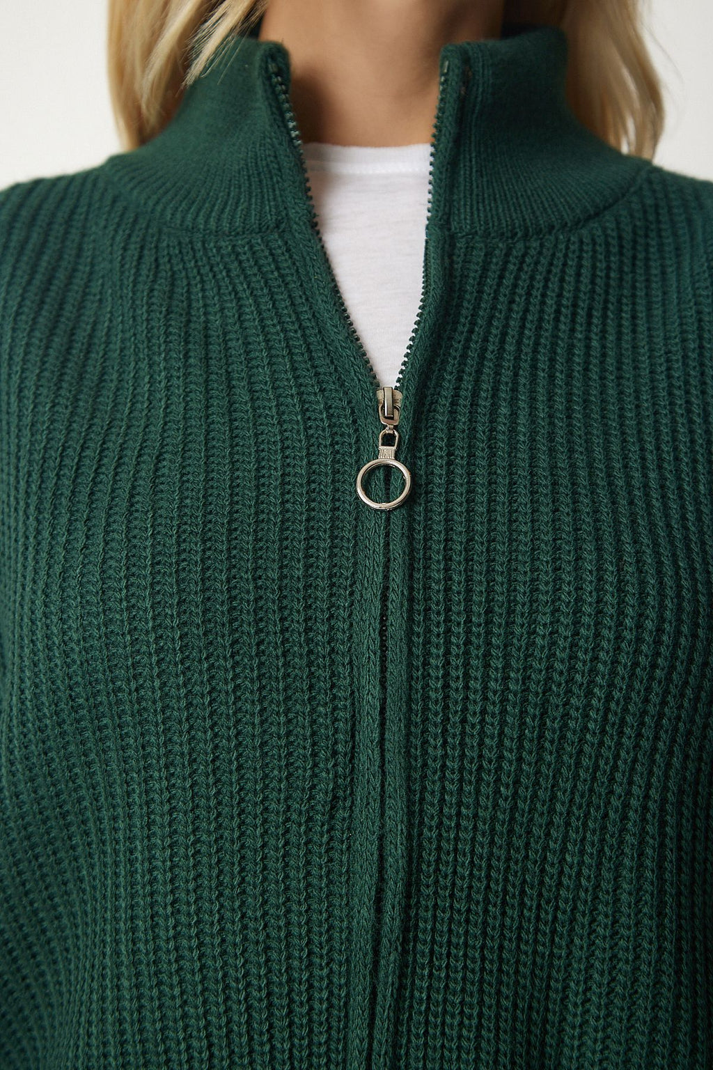 Female emerald green zipper knitwear cardigan yy00172