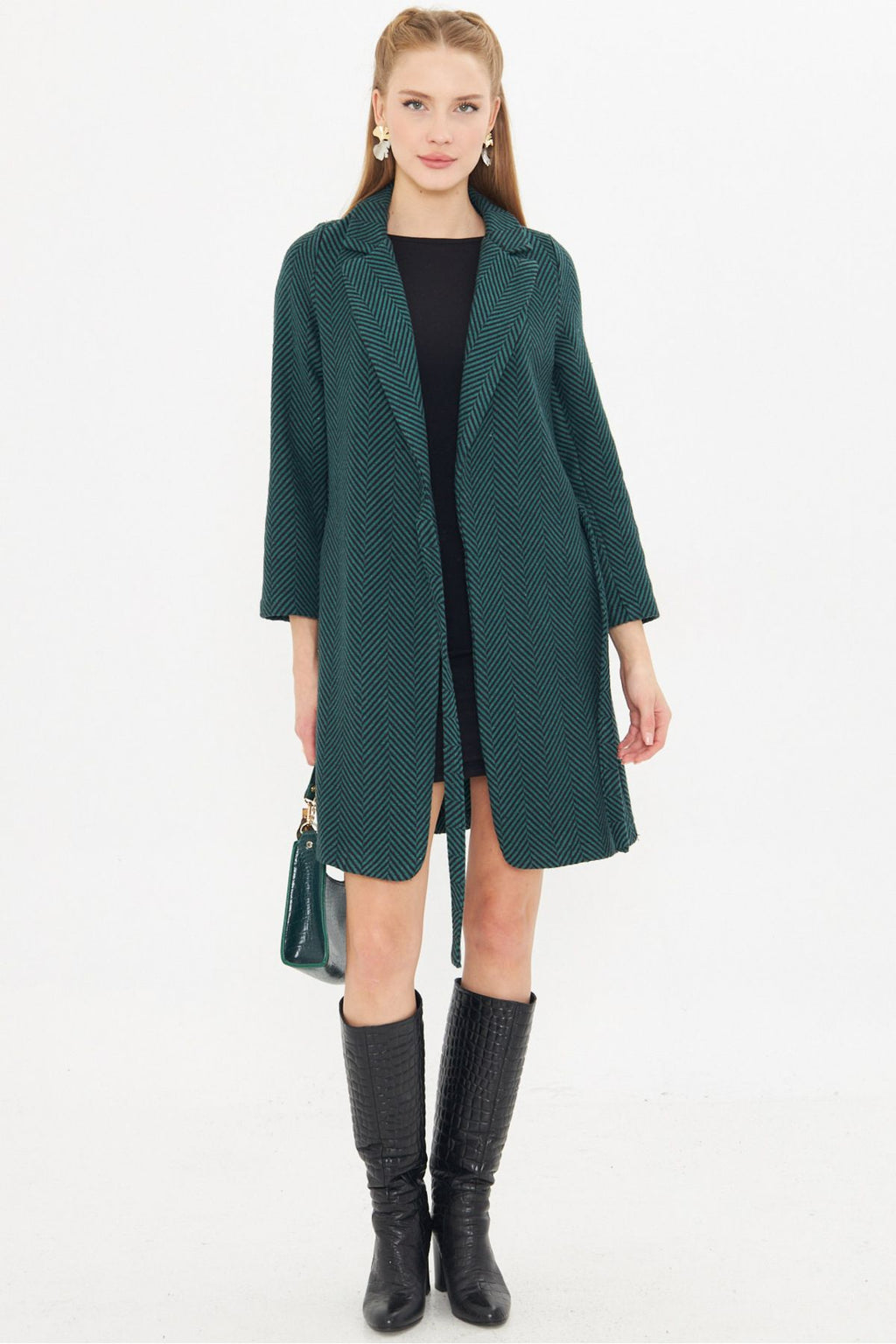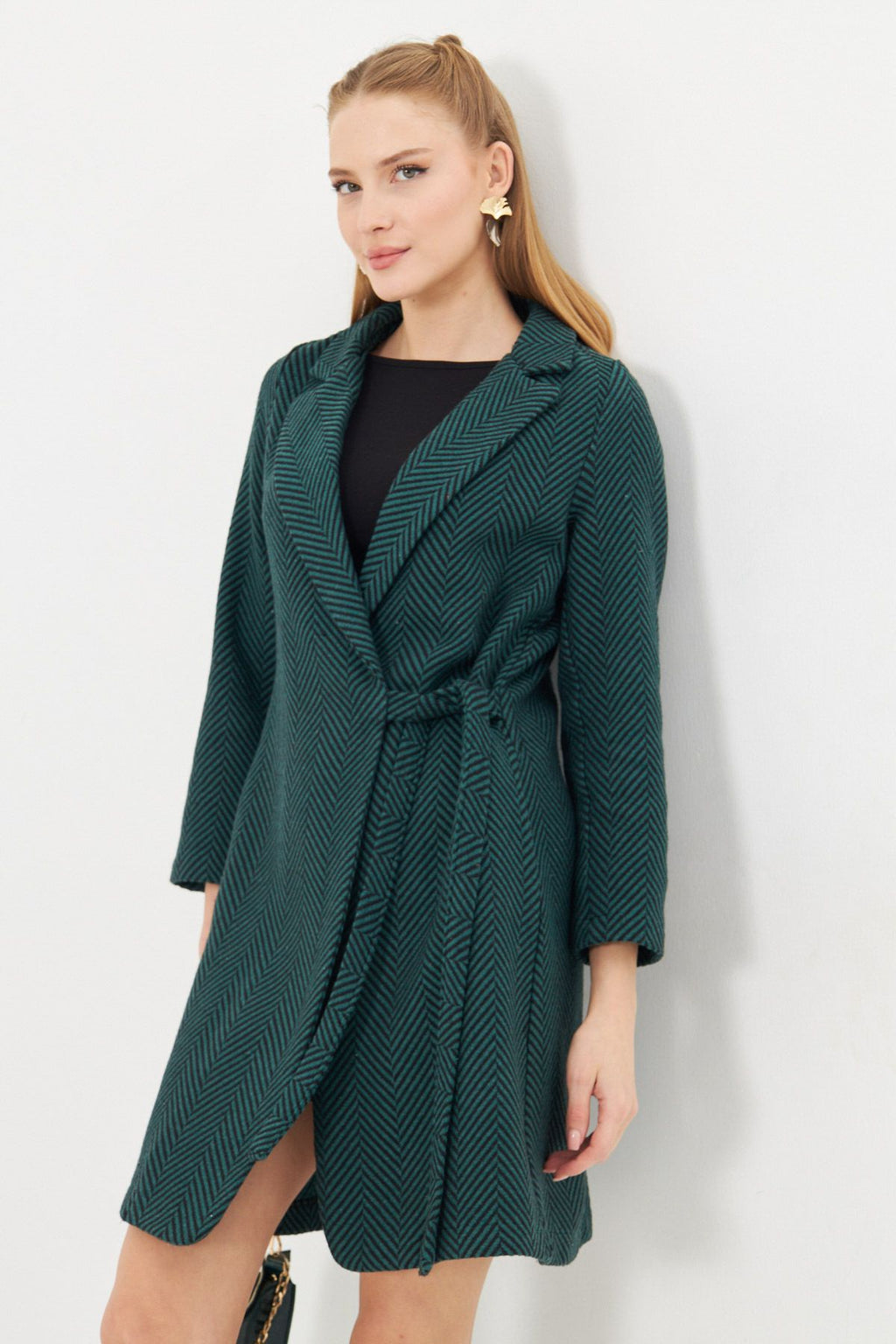Female emerald-on-handed lined pocket long stamp coat ARM-25K001077
