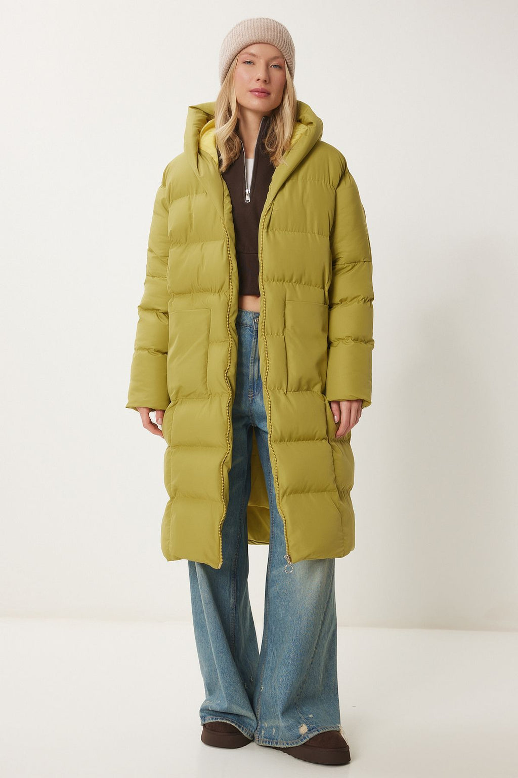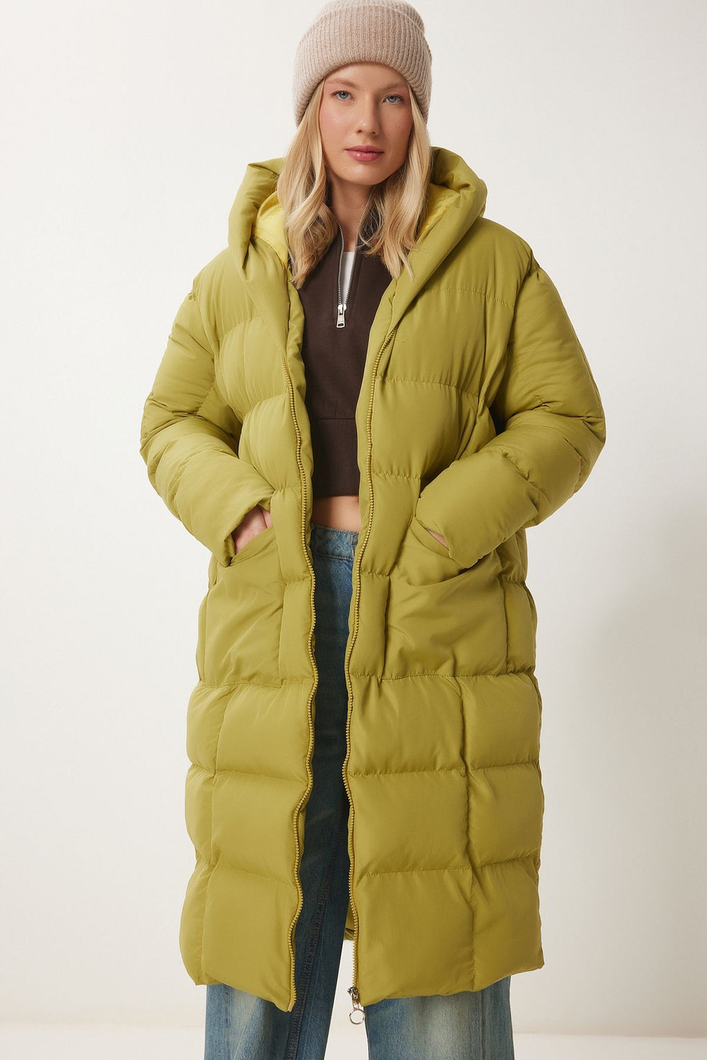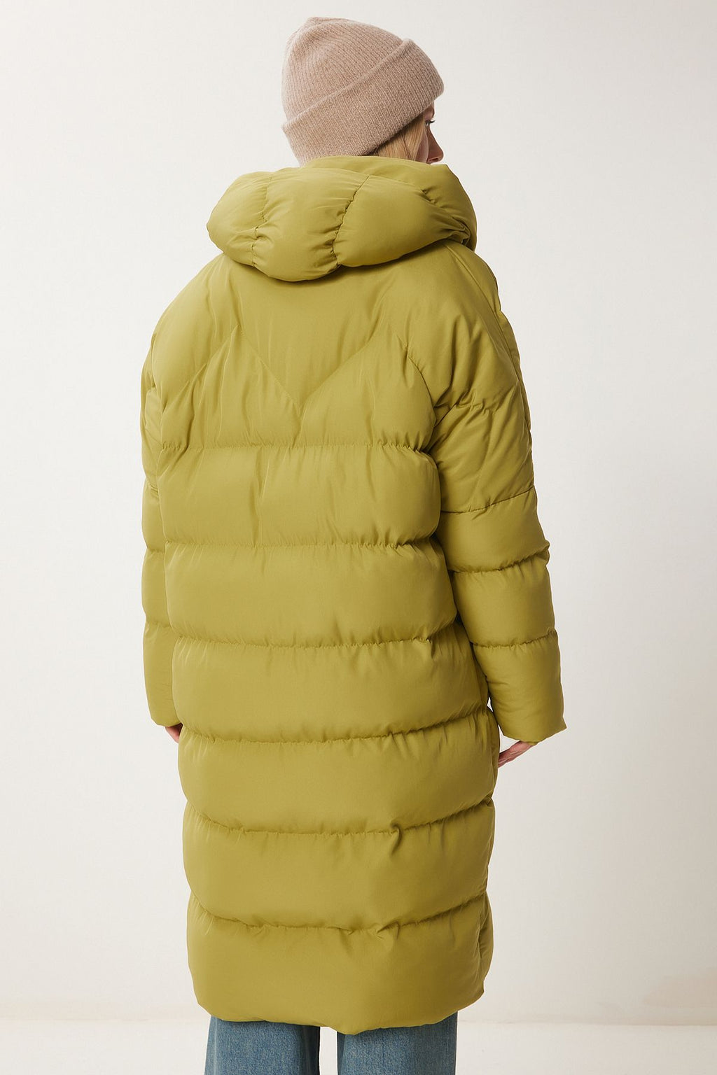 Female fat green hooded overlooking long swelling coat NT00428