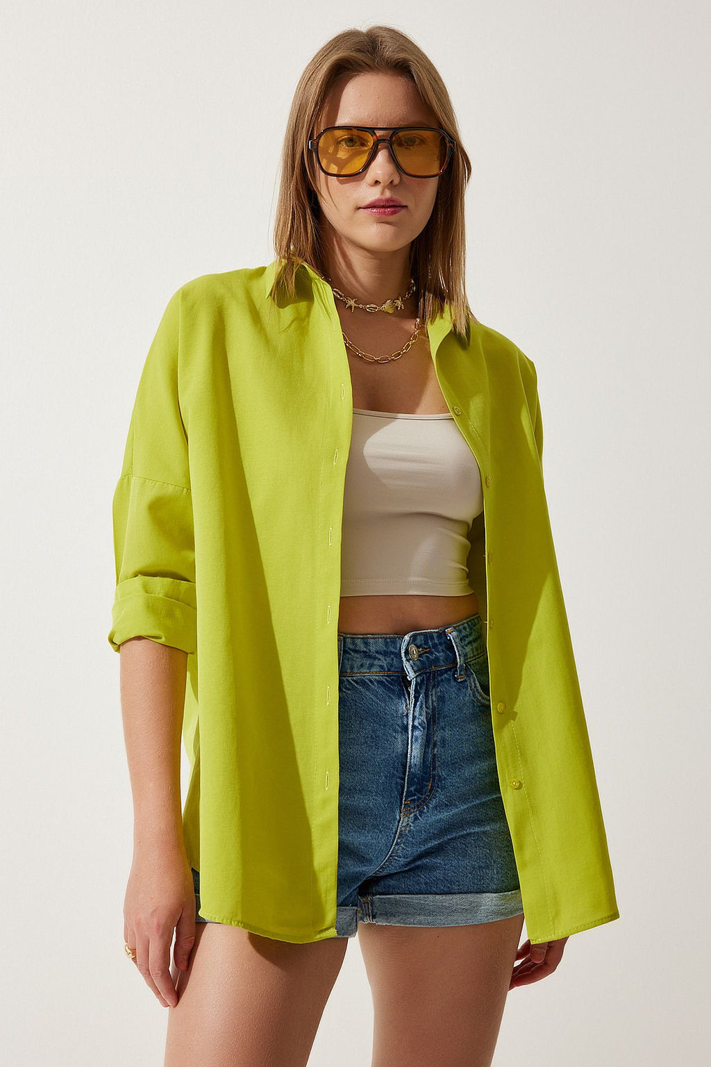 Female Fat Green Oversize Long Basic Shirt DD00842