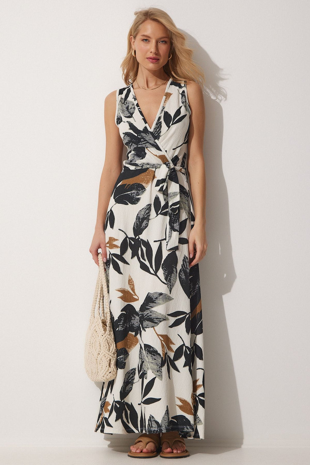 Female Green Cream Flower Anvelop Yaka Summer Knitting Dress ZH00016