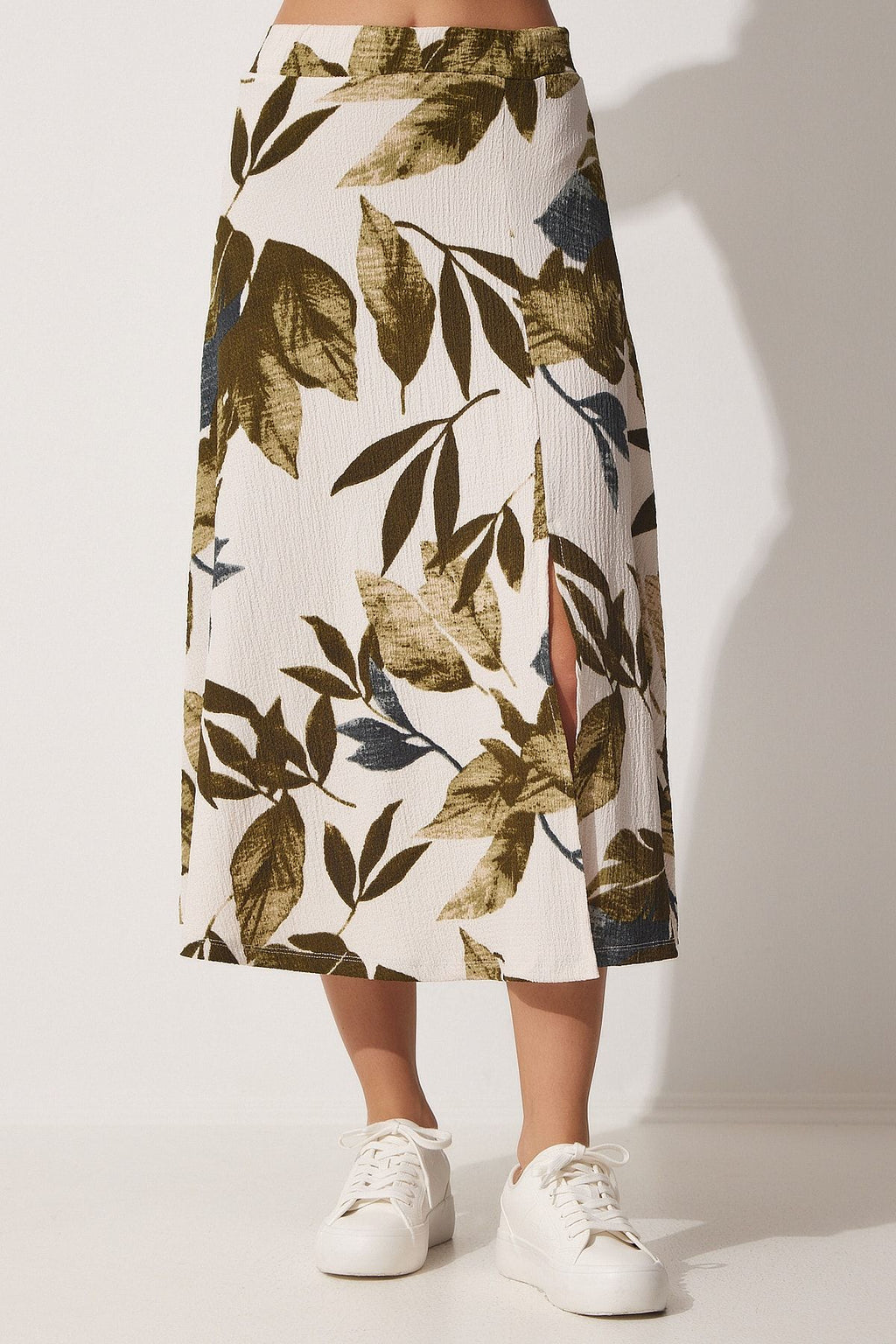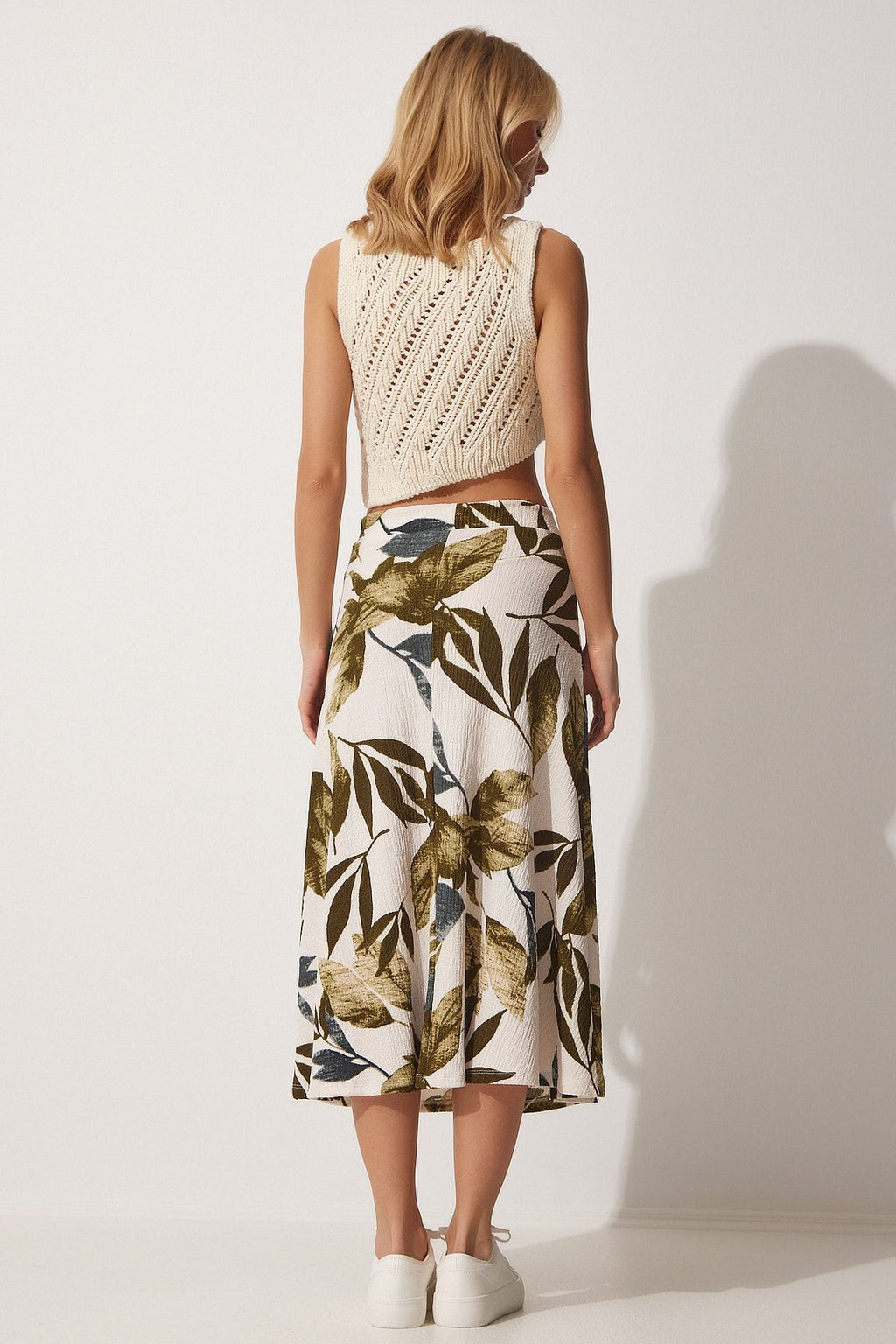 Female Green Cream Patterned Solid Summer Knitting Skirt ZH00017