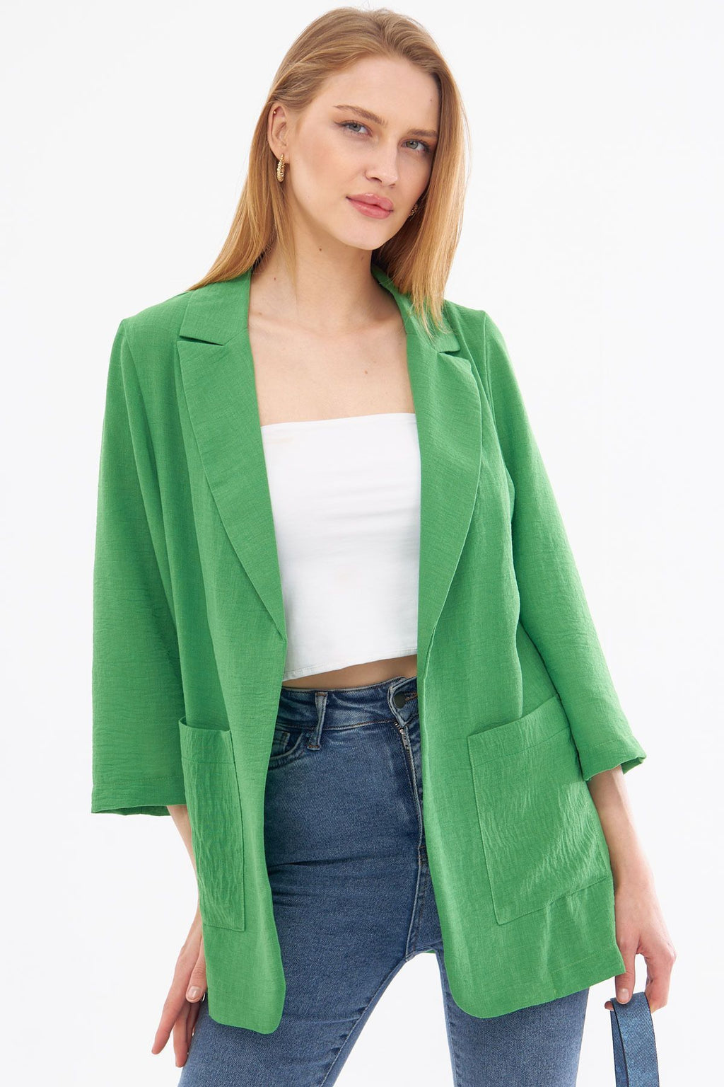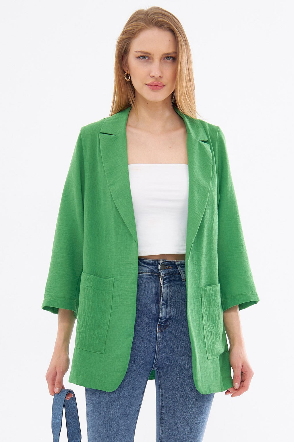 Female green linen-looking pocket overwheeling jacket ARM-24Y001065