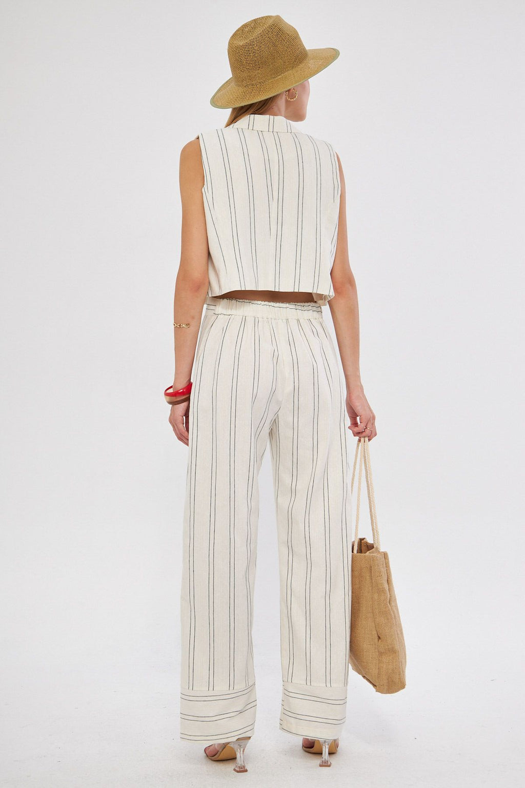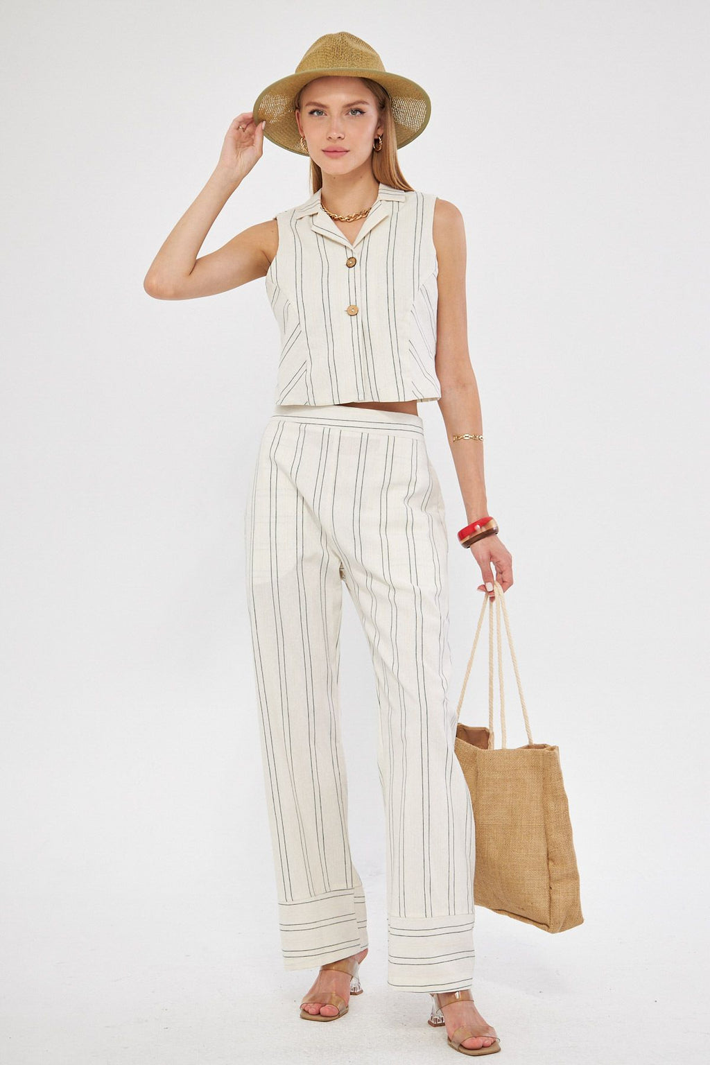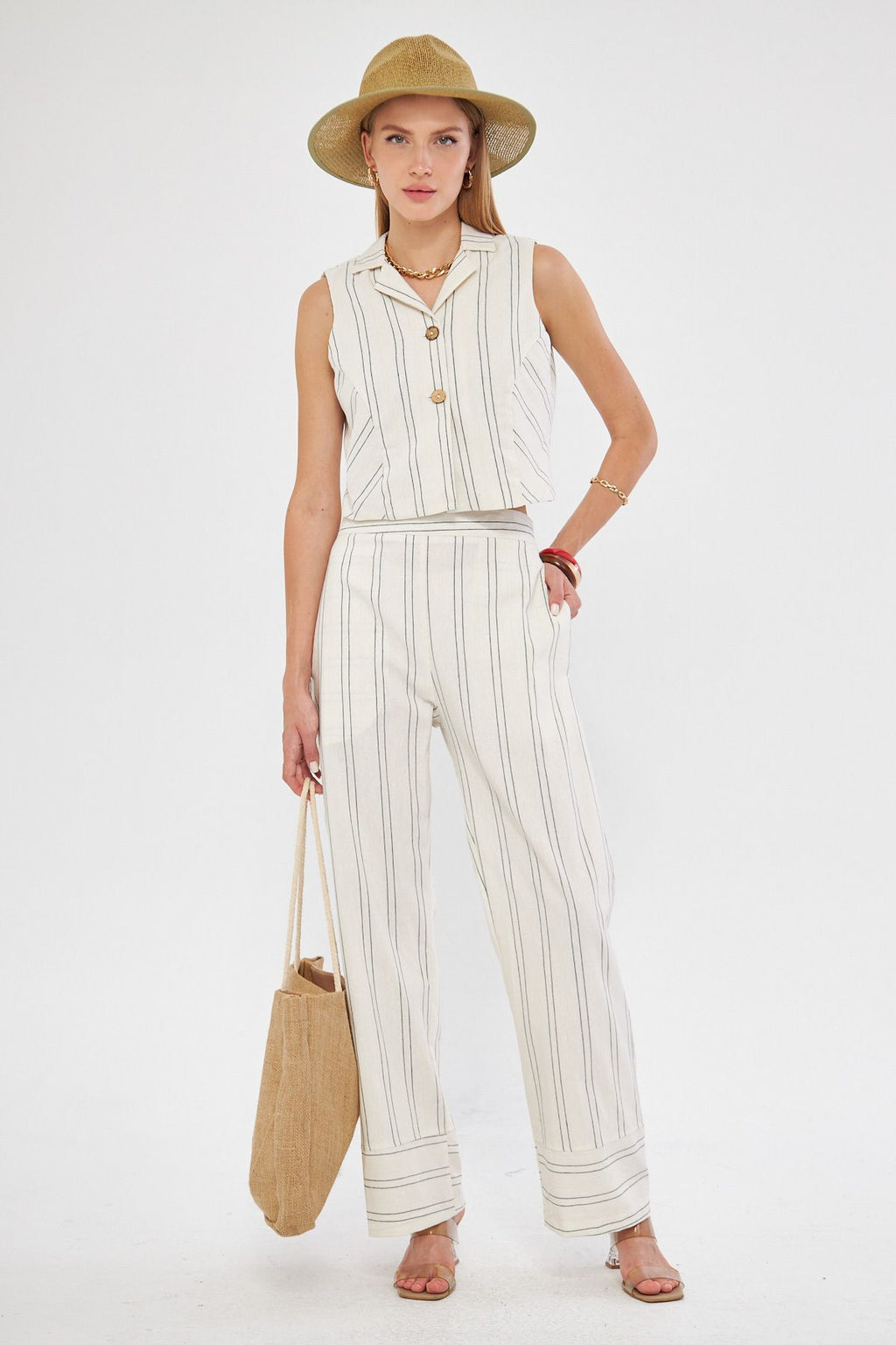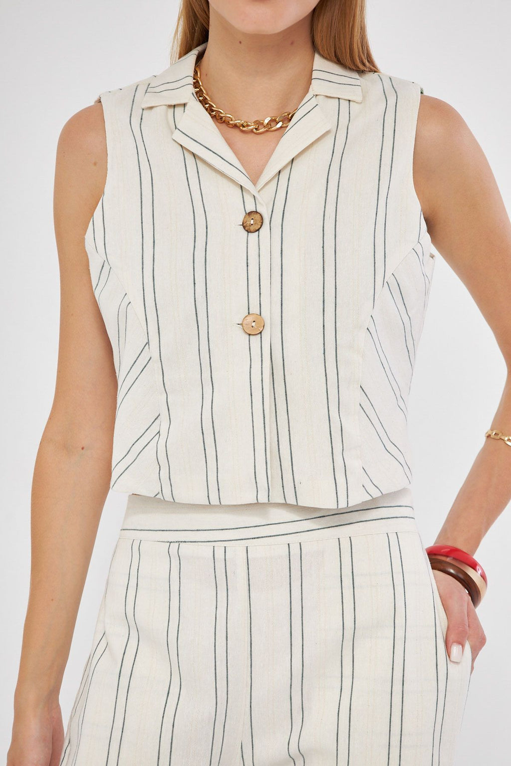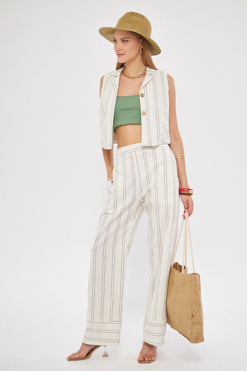 Female Green Men's Collar Buttoned Vest Pants Binary Set ARM-24Y001114