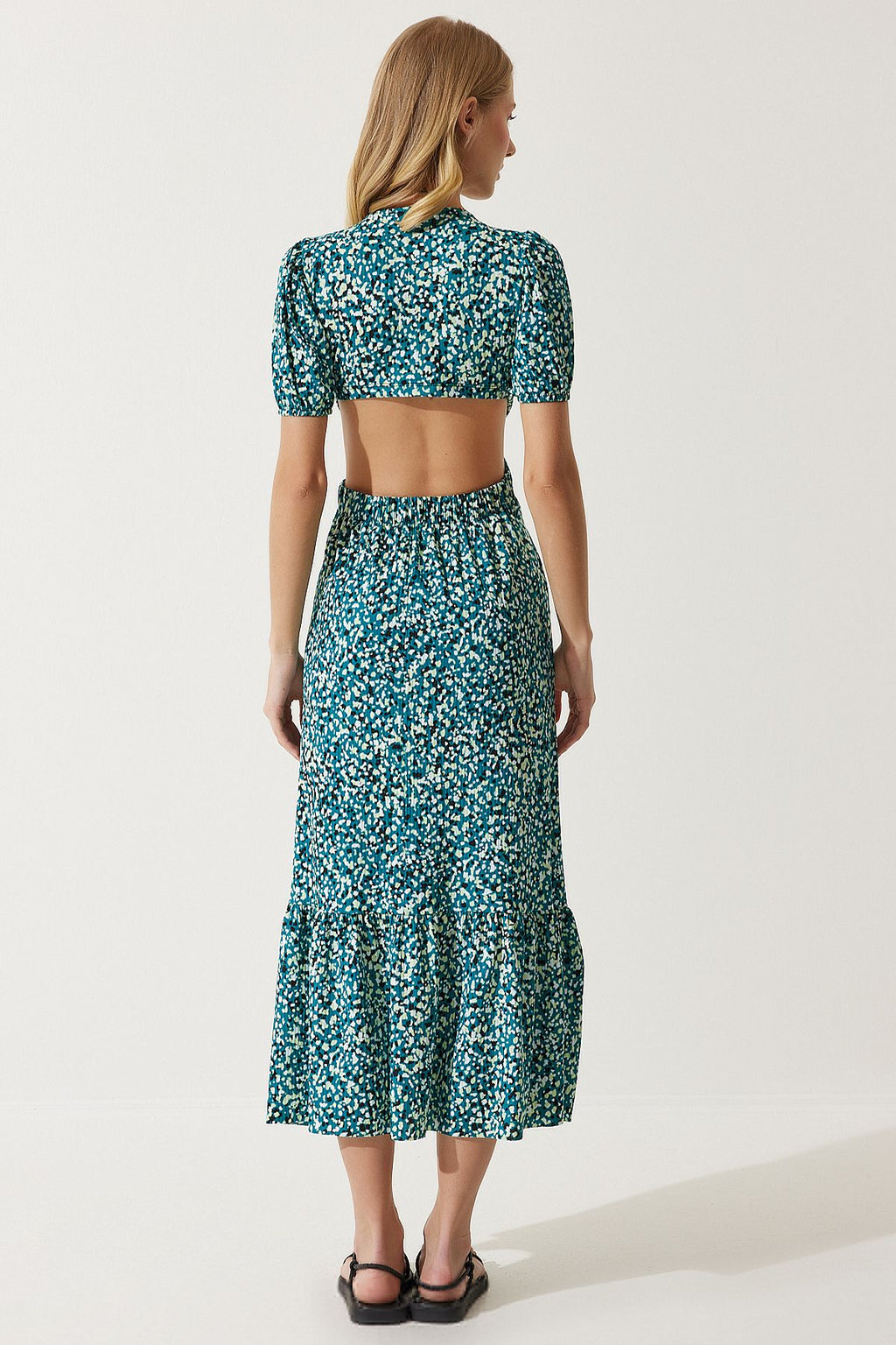Female Green Patterned Window Detailed Flip Knitting Dress MC00263