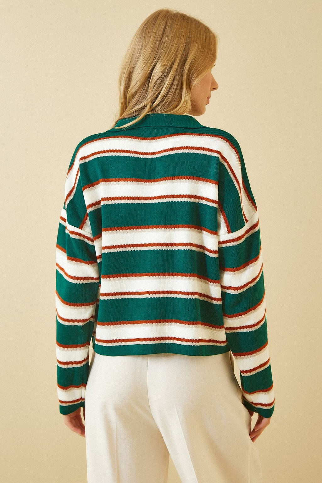 Female Green Polo Yaka striped Crop Knitwear Kazakh Ki00056