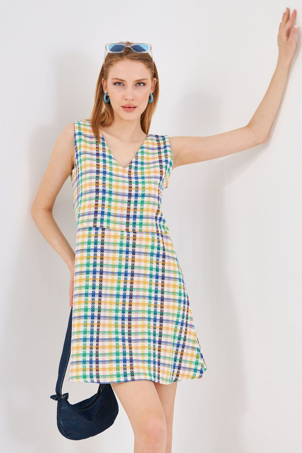 Female Green Tüvit Front Rear V-Neck Sleeveless Clash Mini Dress ARM-24K001073