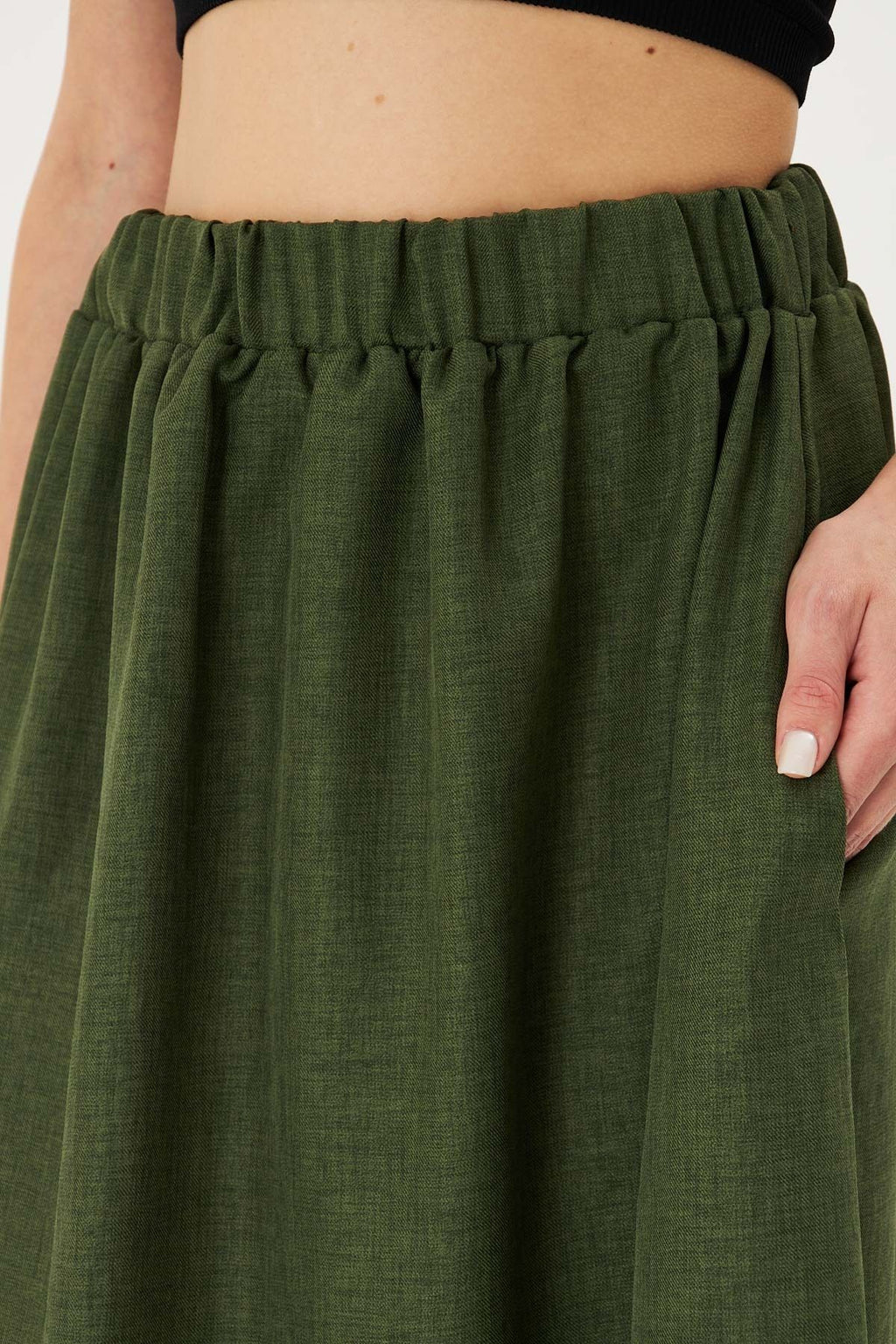 Female Green Waist Midi Skirt with Pockets Arm-25k001010