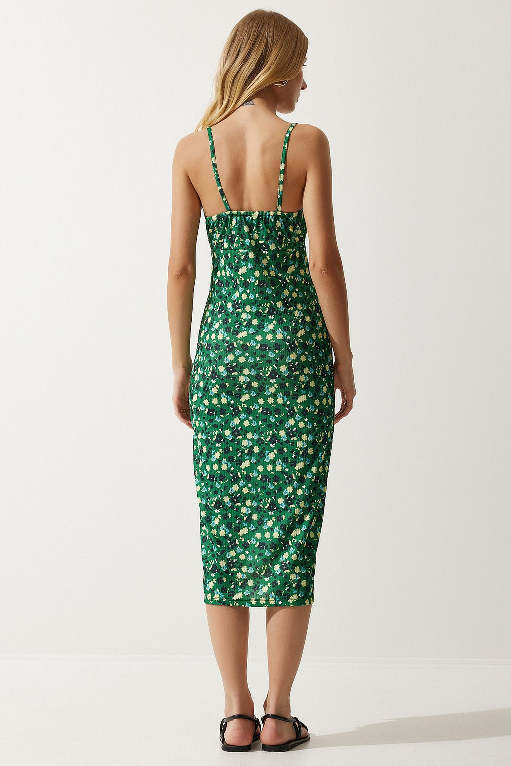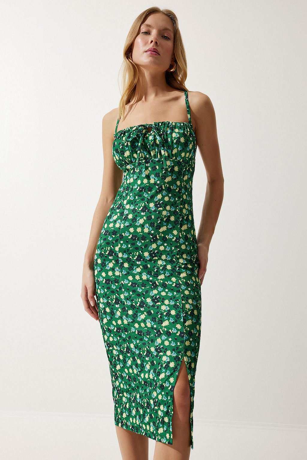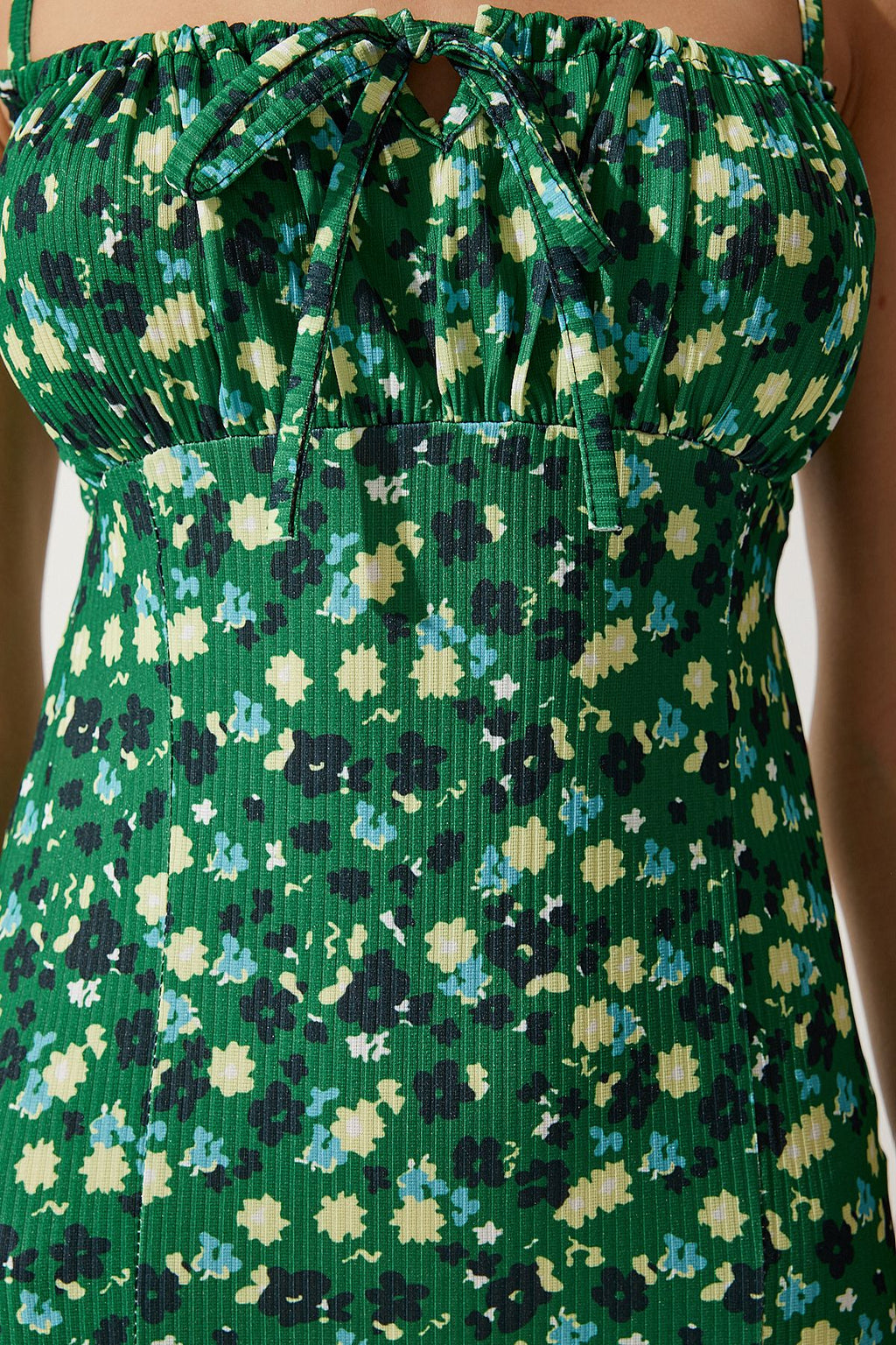 Female Green Yellow Flower Sweting Summer Knitting Dress CI00029