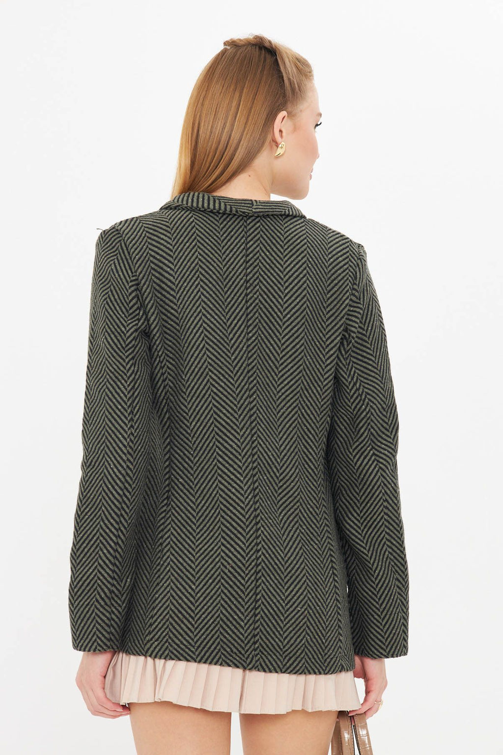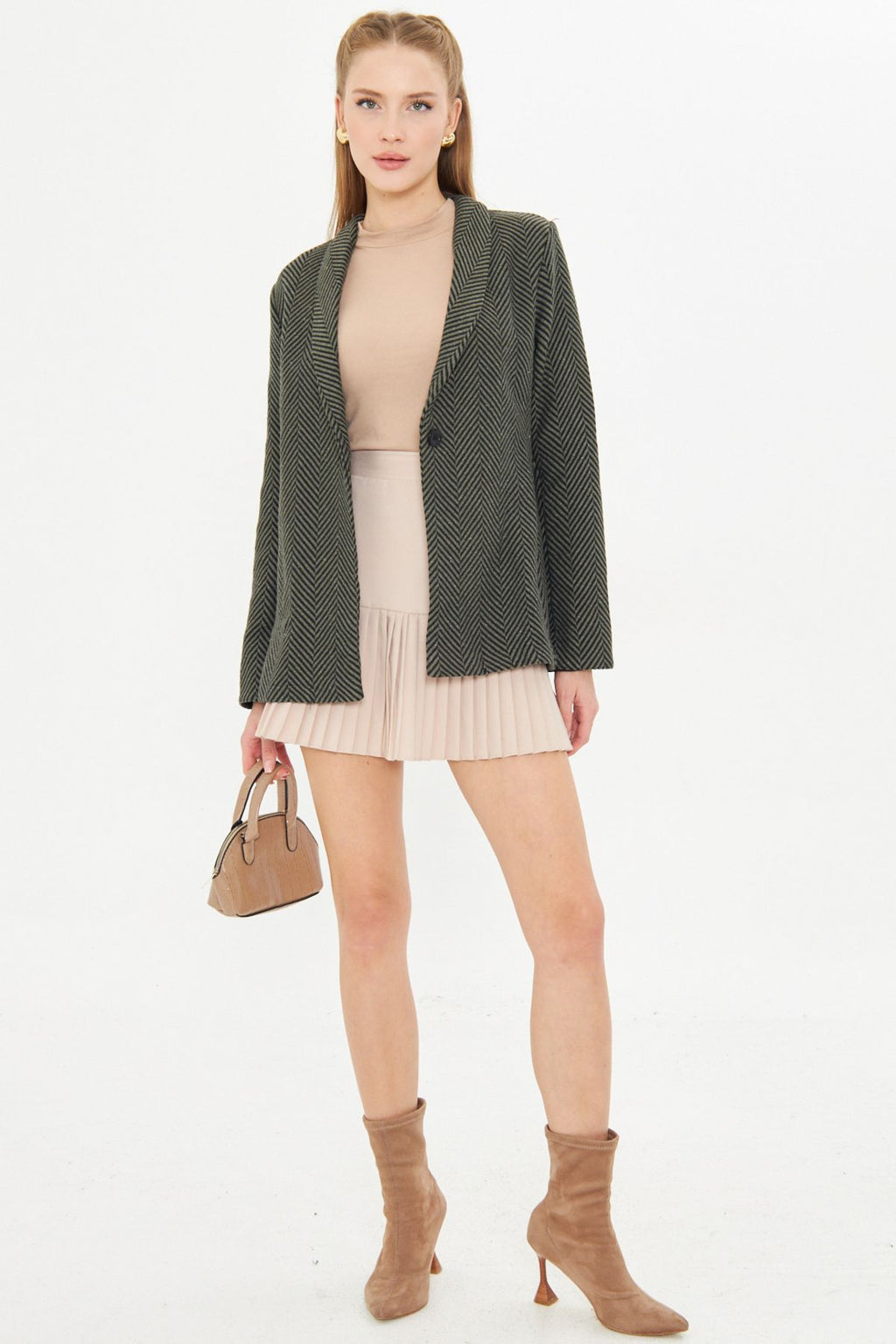 Female Khaki Fish Ridge Pattern Folding Single buttoned stamp jacket ARM-24K001066