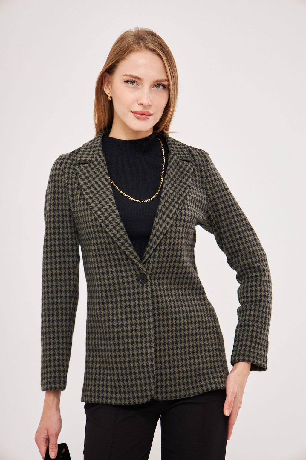 Female Khaki Kazayağı Pattern Single button Jacket ARM-20K001121