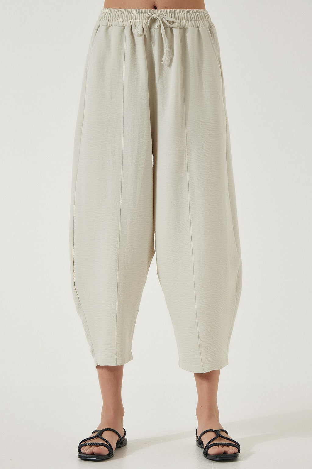 Female Light Cream Pocket Linen Viscose Shalwar Pants CV00001