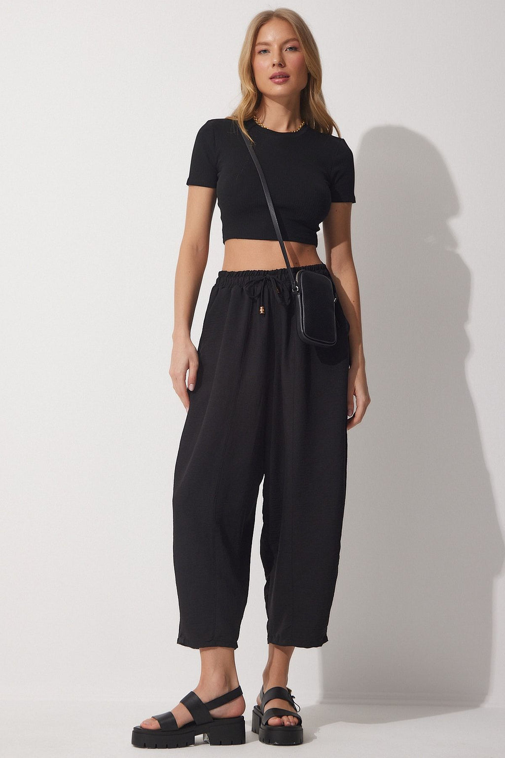 Female Live Black Pocket Linen Viscose Shalwar Pants CV00001