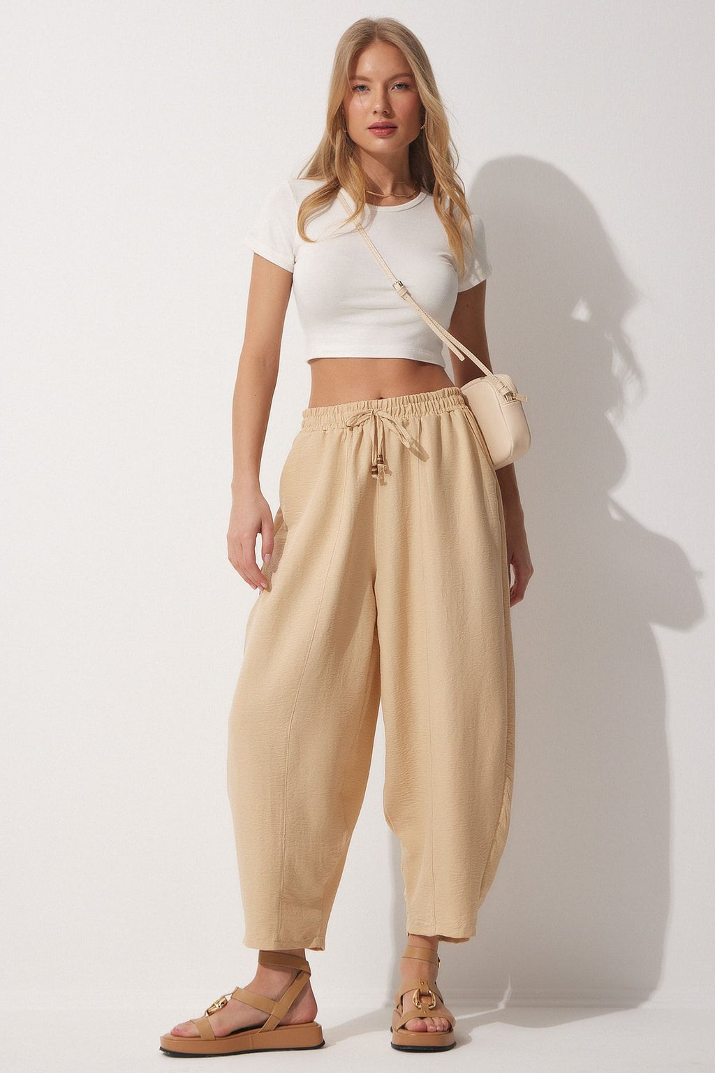 Female Live Cream Pocket Linen Viscose Shalwar Pants CV00001