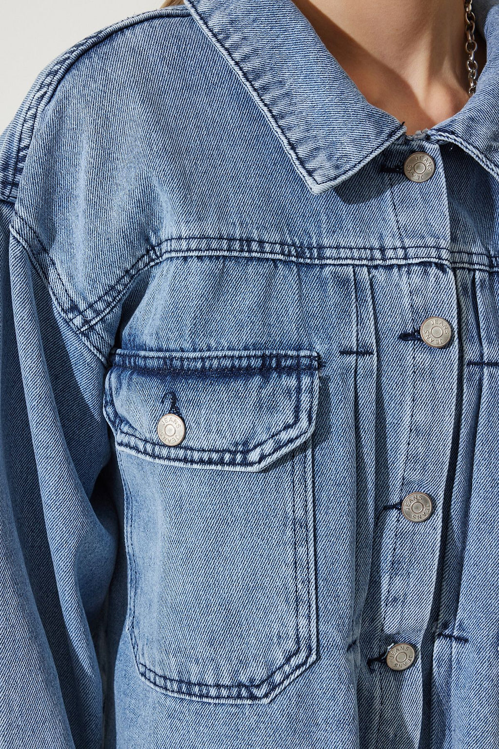 Female Medium Blue Wide Pocket Edges Seamless Denim Jacket RV00188