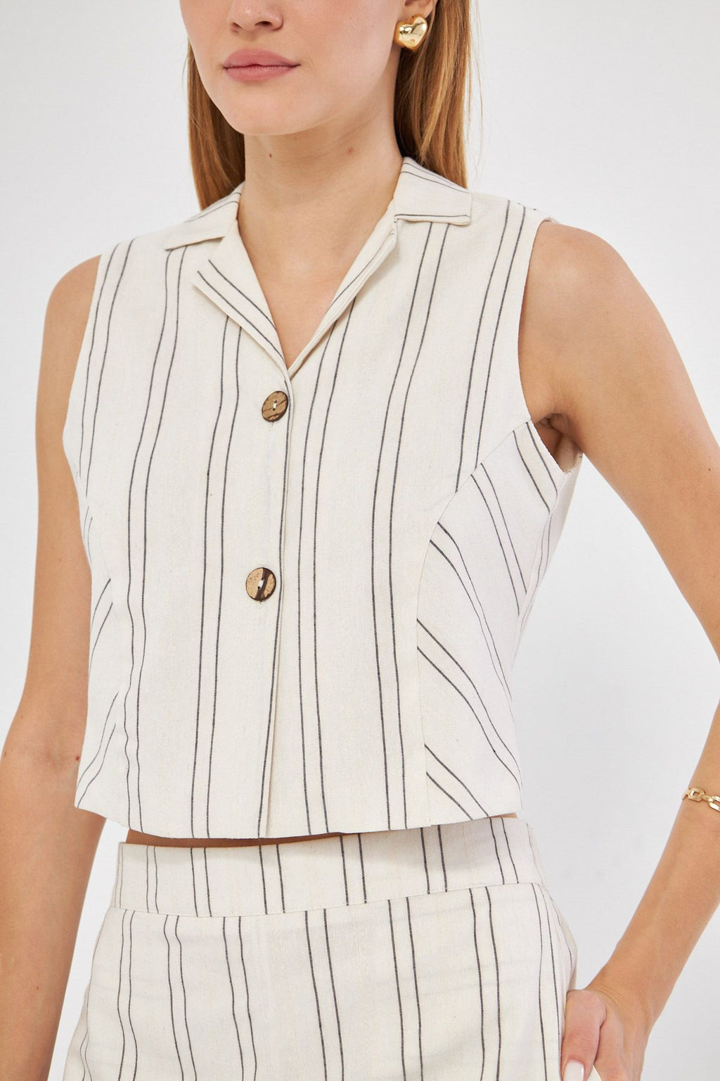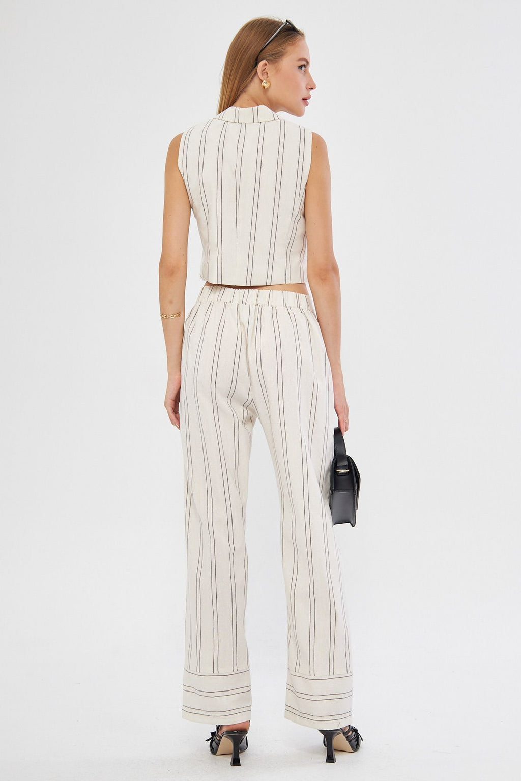 Female Men's collar buttoned lined vest trousers dual set ARM-24Y001114