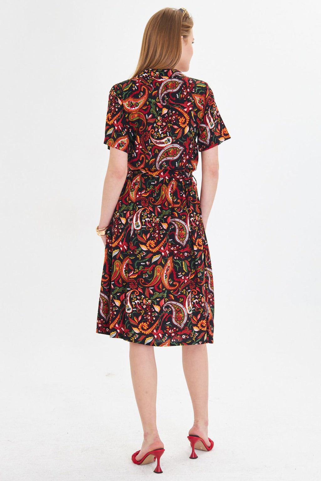 Female Mercan front buttoned waist shirred belt midi size dress ARM-24Y001068