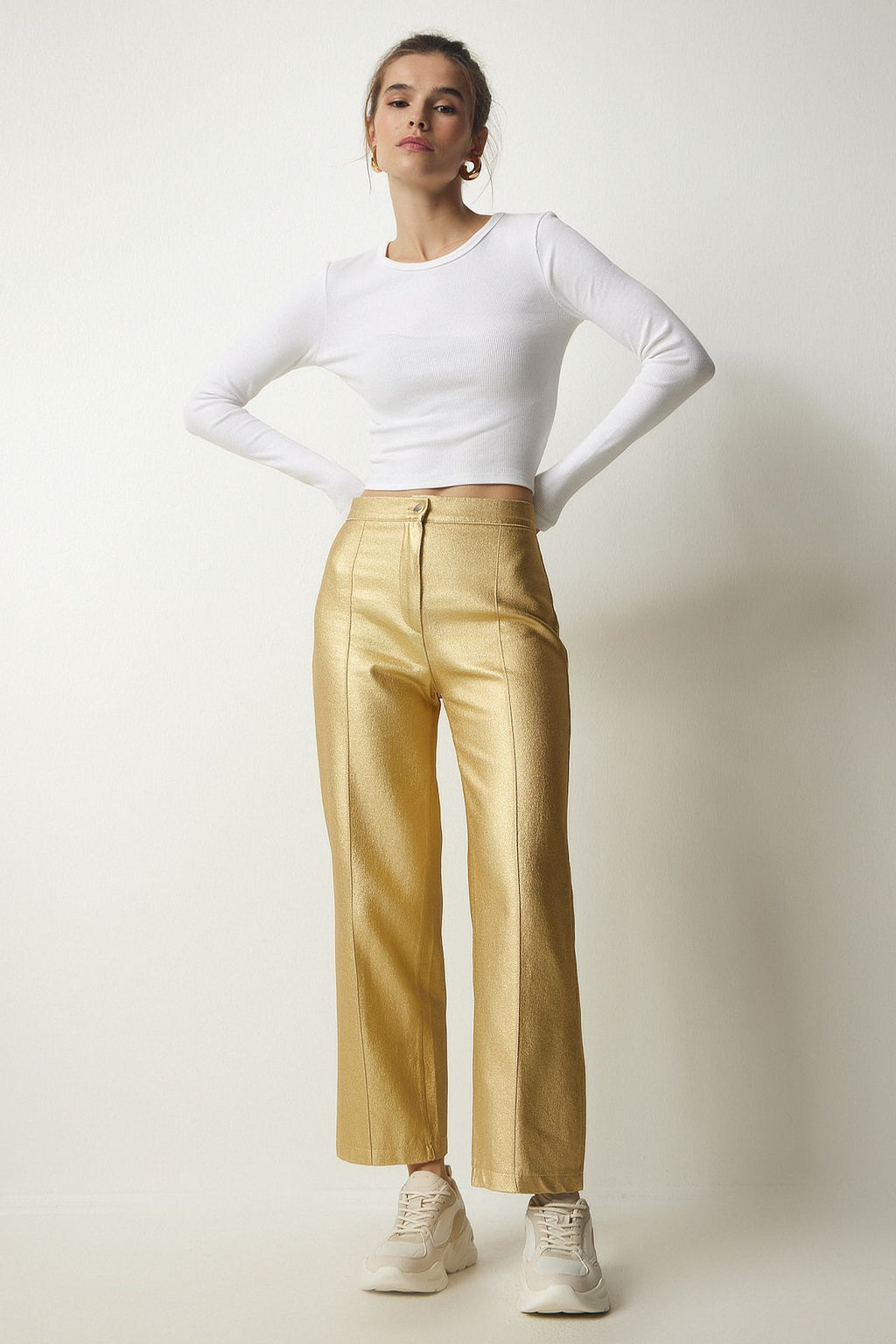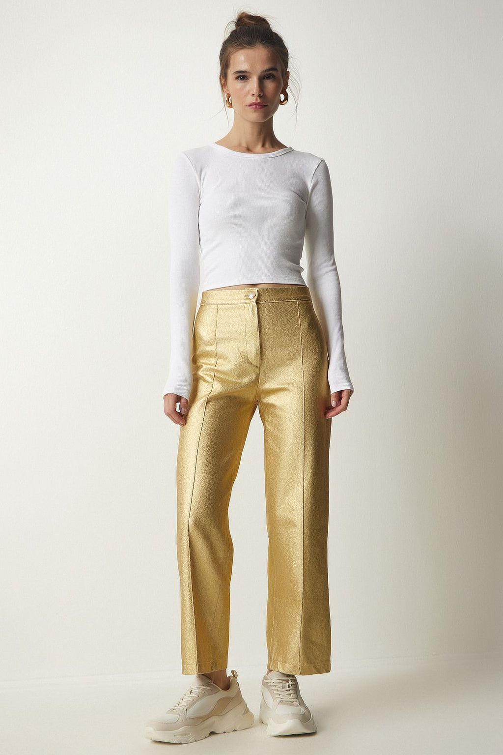 Female Metallic Yellow Metallic Carrot Pants UL00012