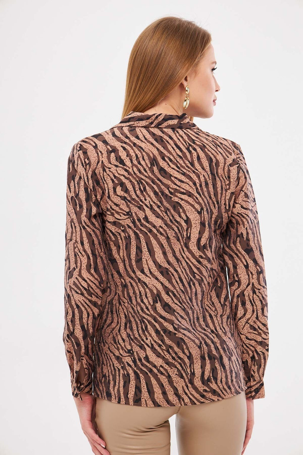 Female mink-bej patterned long sleeve shirt ARM-25K001040