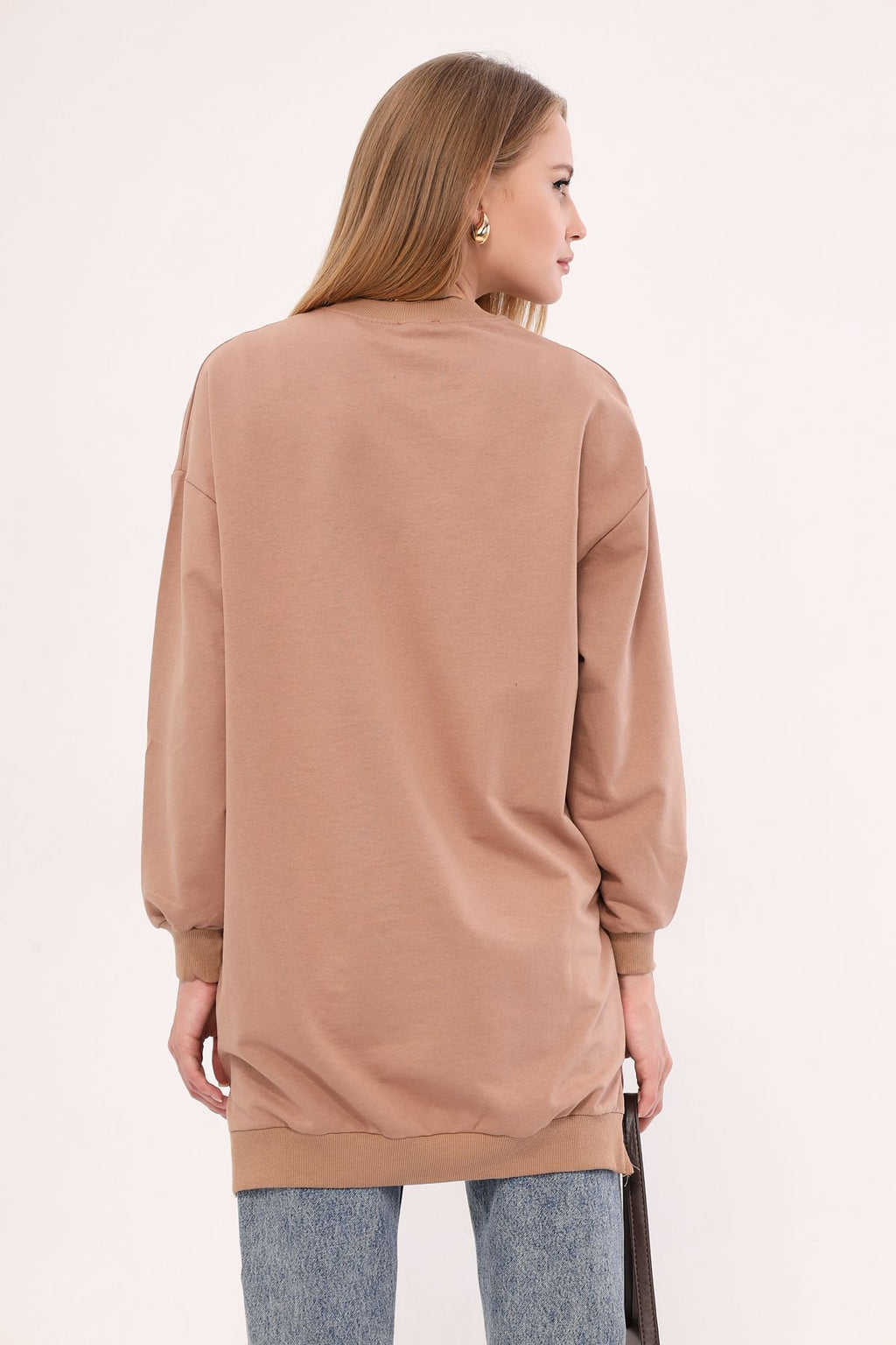 Female mink bike in front of the collar written Tunic Sweatshirt ARM-25K001029
