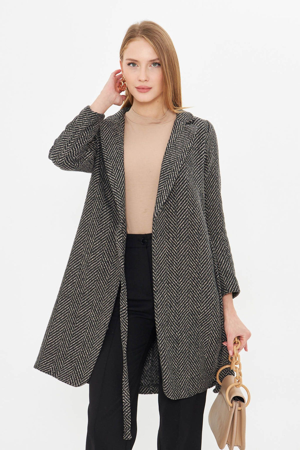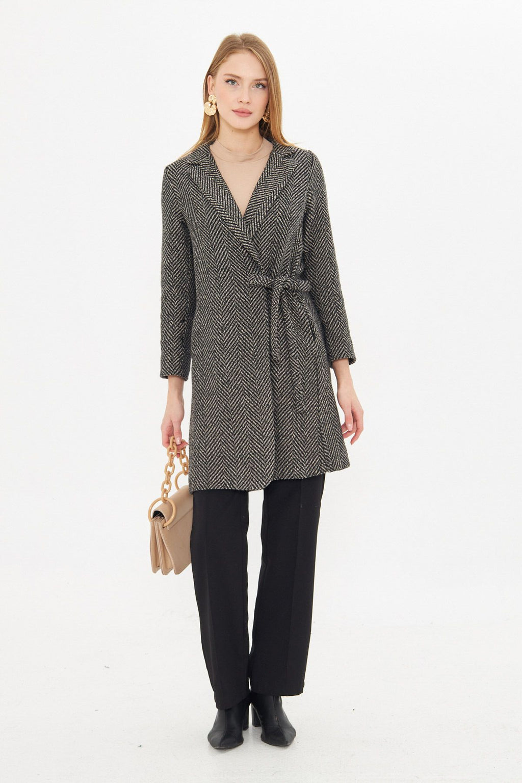 Female Mink Side-Tie Fish Pattern Pattern Long Stamp Coat ARM-24K001010
