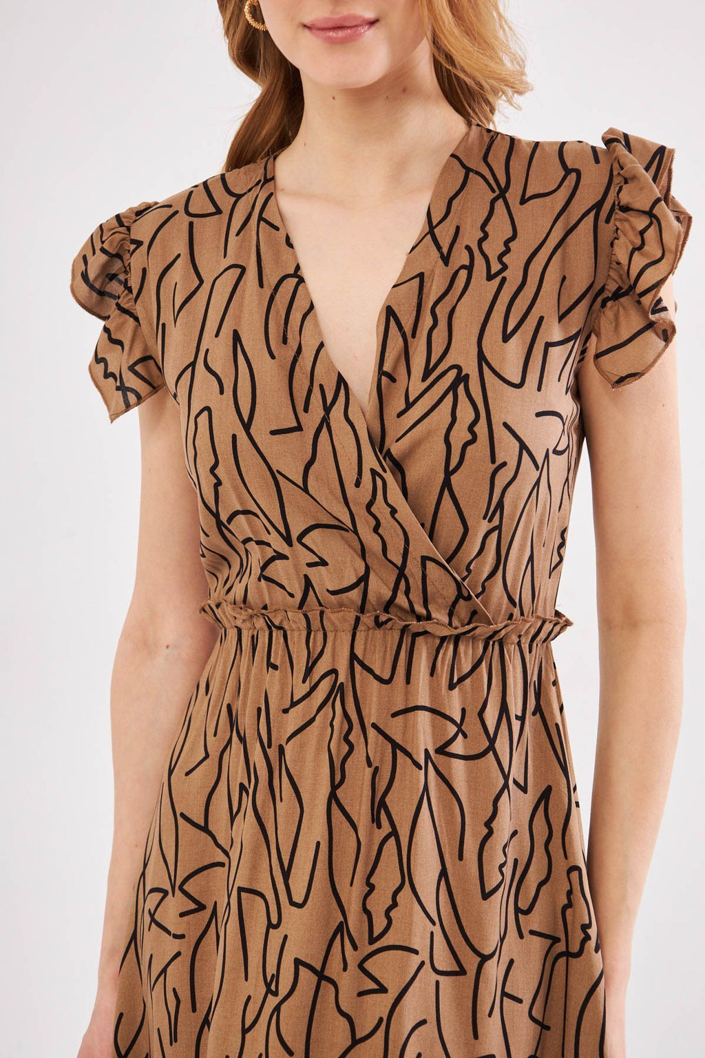Female mink stomach dress cruve collar shoulder frilly detailed waist midi midi height ARM-24Y001020