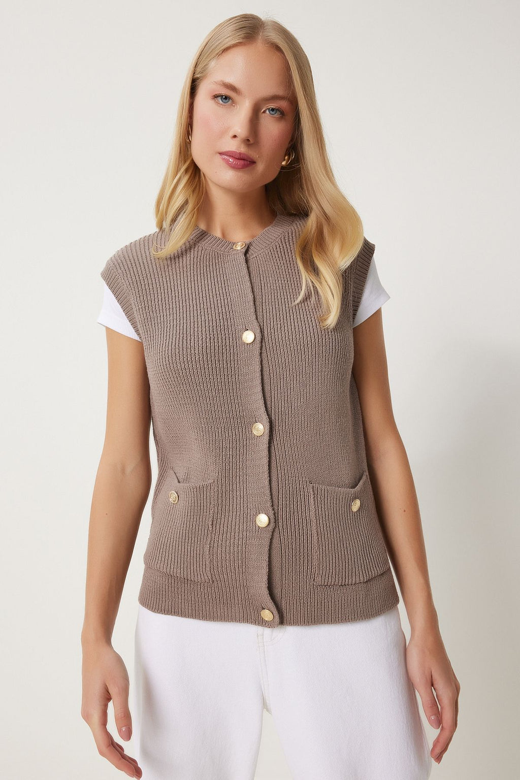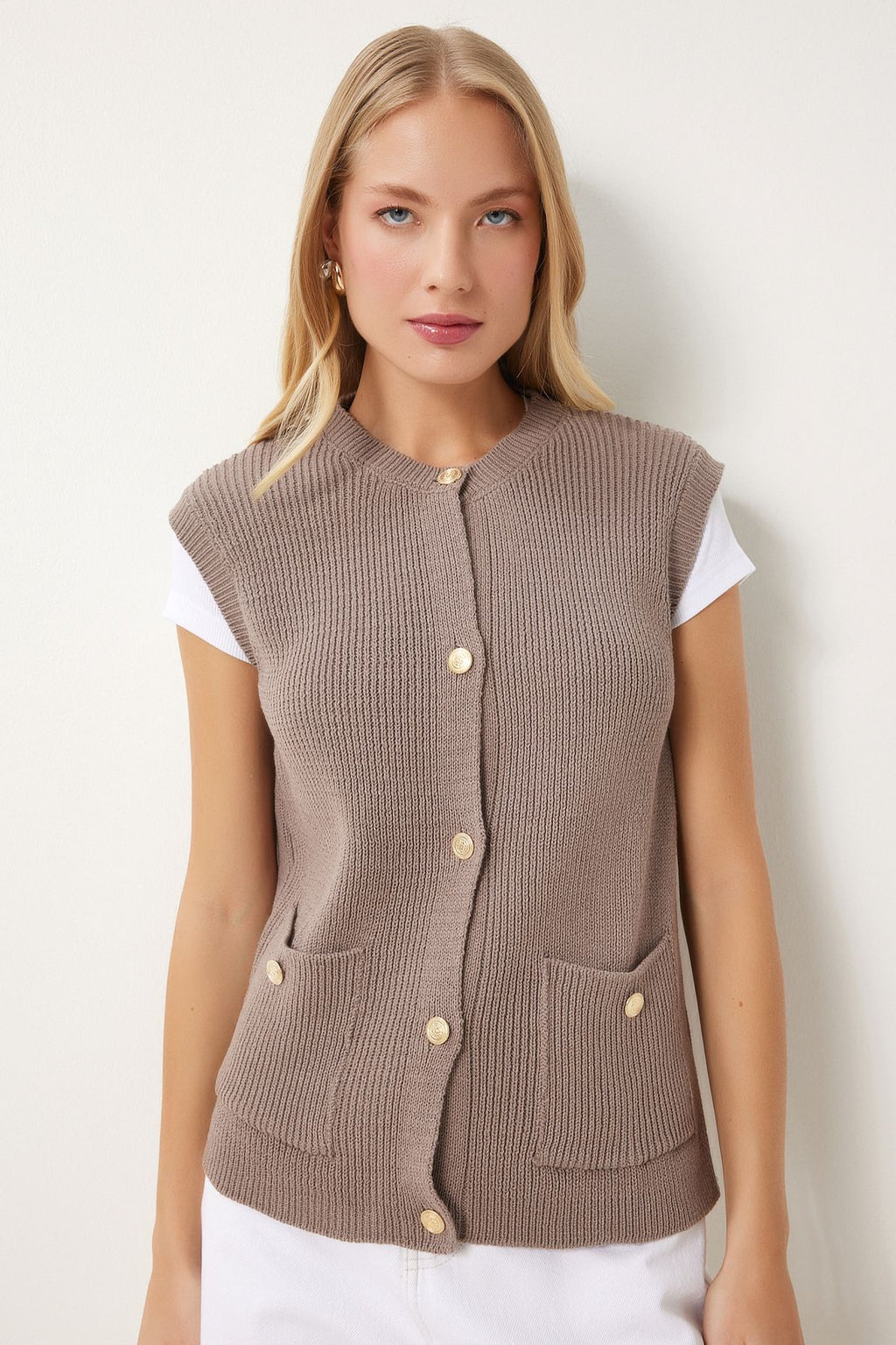Female mink with stylish buttoned pocket knitwear vest US00948