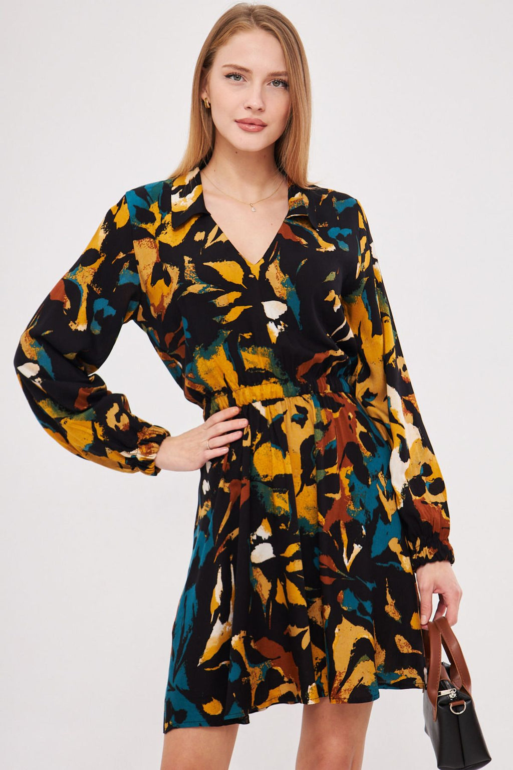 Female mustard shirt collar detailed waist arm tire closes dress ARM-25K001043