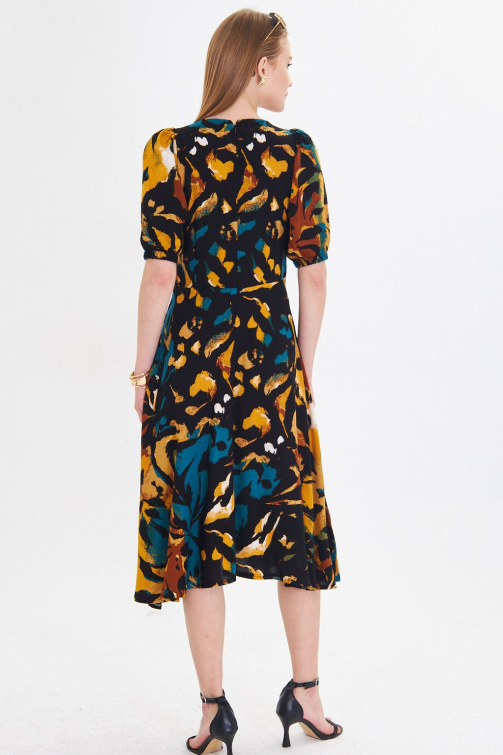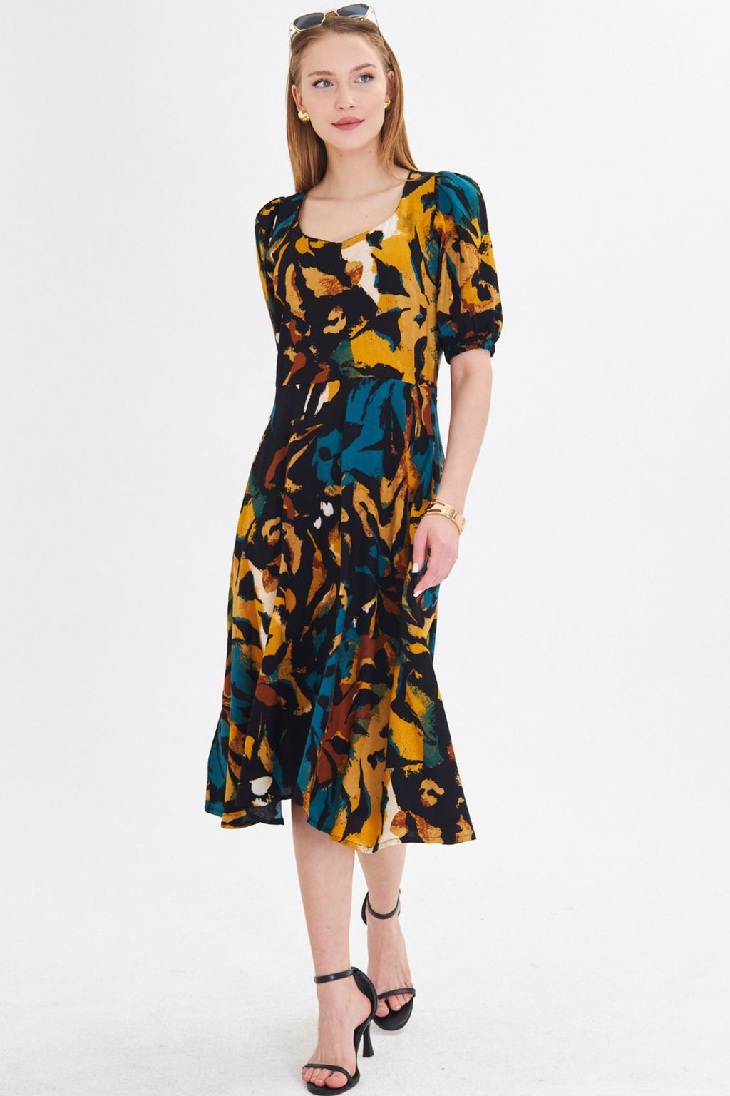 Female mustard u collar arms with rubber midi height height dress ARM-25Y001004