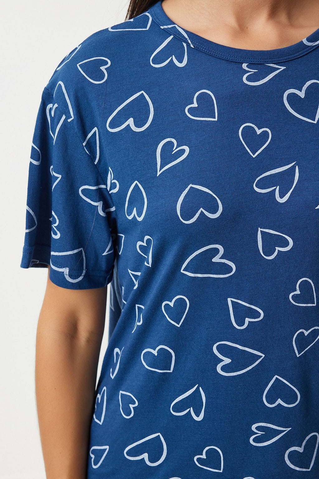 Female navy blue patterned viscose pants T-shirt pajama set EC00046