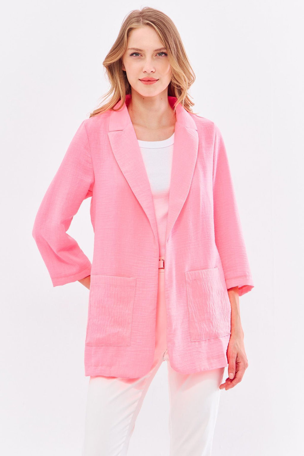 Female Neon Pink Linen-Looking Pocket Oversize Jacket ARM-24Y001065
