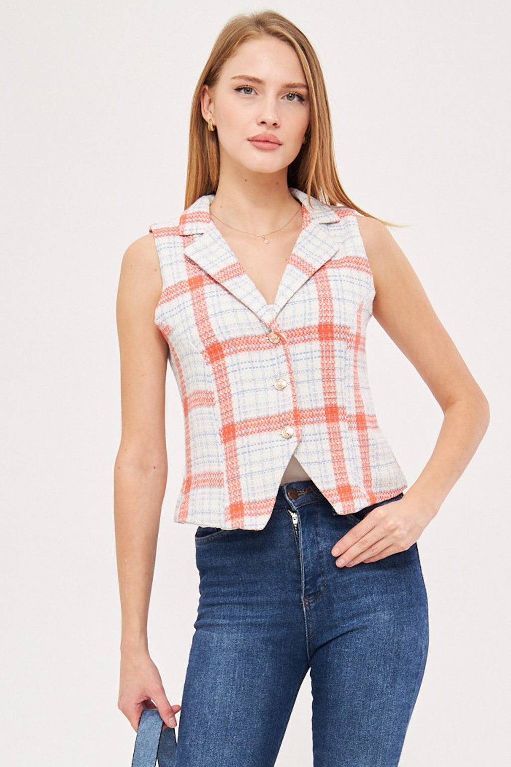Female Orange-Blue Men's Collar Sitting on the Body Primary Vest ARM-25K001032
