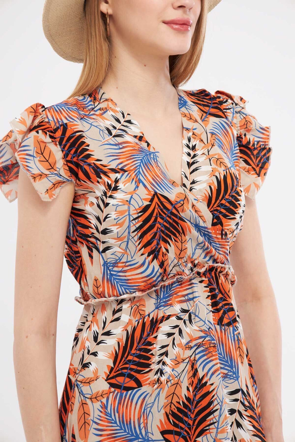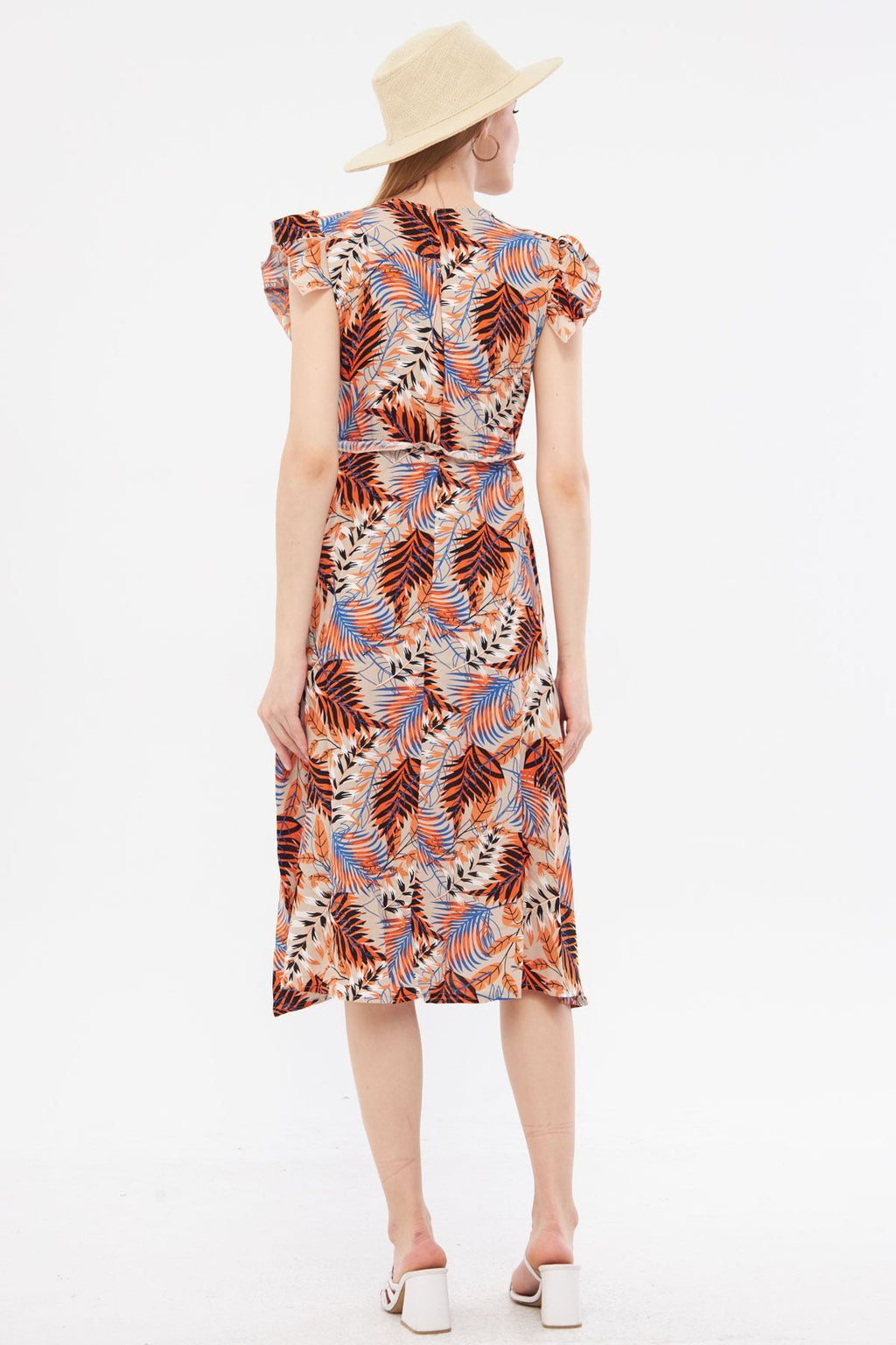 Female Orange Cruve Collar Shoulder Shoulder Suffering Detail Waist Midi Boy Dress ARM-24Y001020