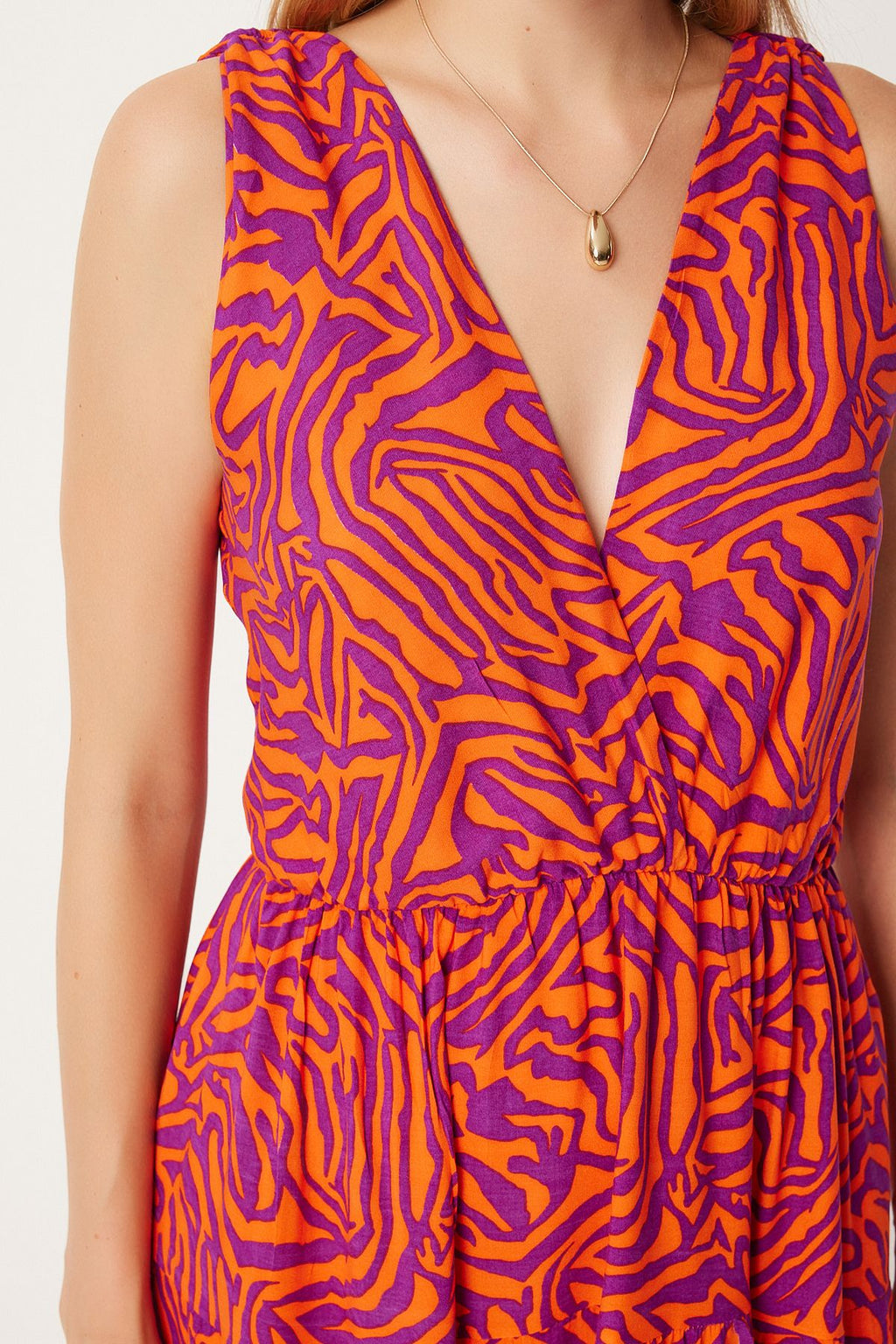 Female Oranj Purple Patterned V -Neck Summer Viscose Dress CI00110