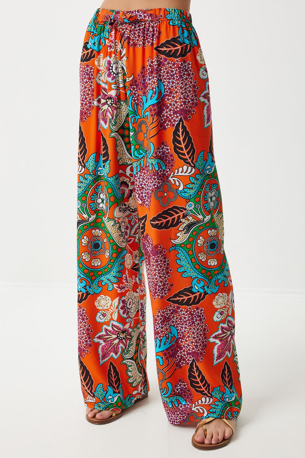 Female Oranj Turquoise Patterned Viscose Palazzo Pants EN00606