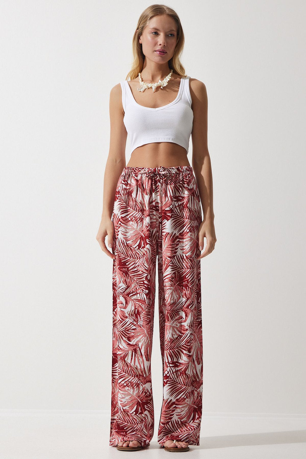 Female Peach Patterned Viscose Palazzo Pants EN00606