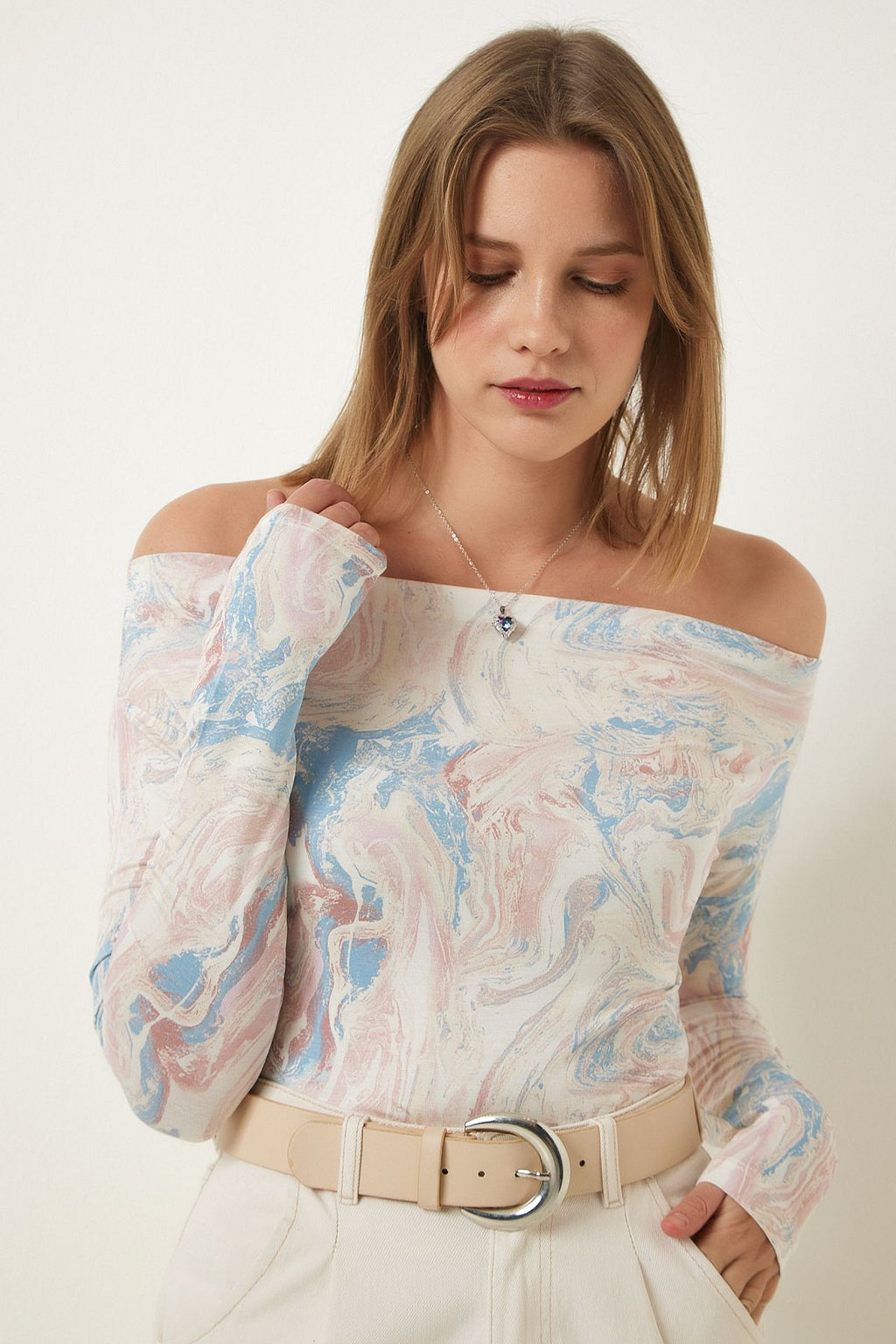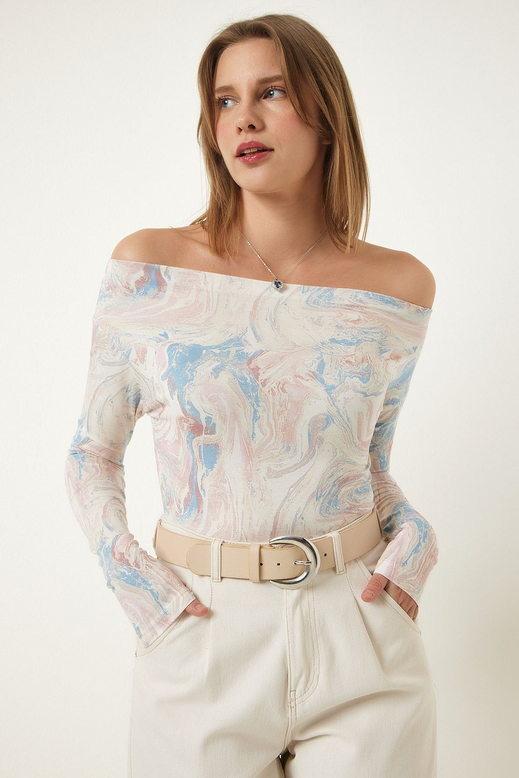 Female Pink Kayak Bol Patterned viscose knitted blouse RX00047